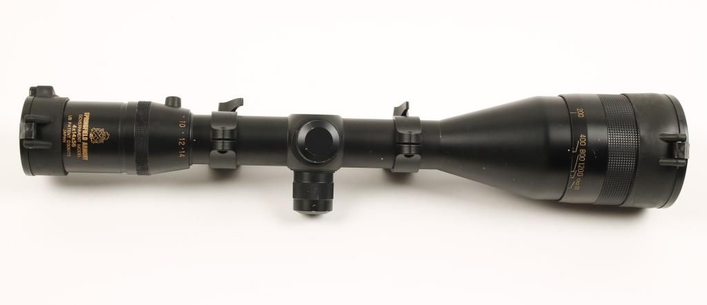 Government Model. Adjustable objective scope with flip up scope covers and quick detachable Weaver style rings.