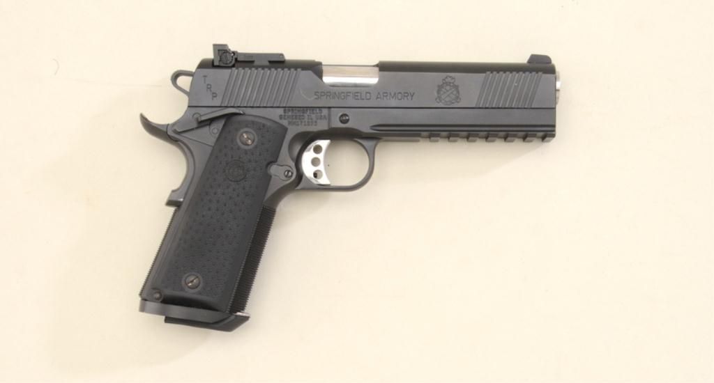 Springfield Armory TRP Operator, #NM171895, .45 ACP, 5" heavy barrel, full rail frame, black rubber grips, adjustable sights with all the target features. Ambidextrous safety, skeletonized hammer, target triggerwith great pull, checkered front and back straps, slide serrations front and rear. Pistol is in fine to near excellent condition showing only the slightest use. Bore is excellent, action is tight with excellenttrigger pull. One mag. Est. $750-1500.