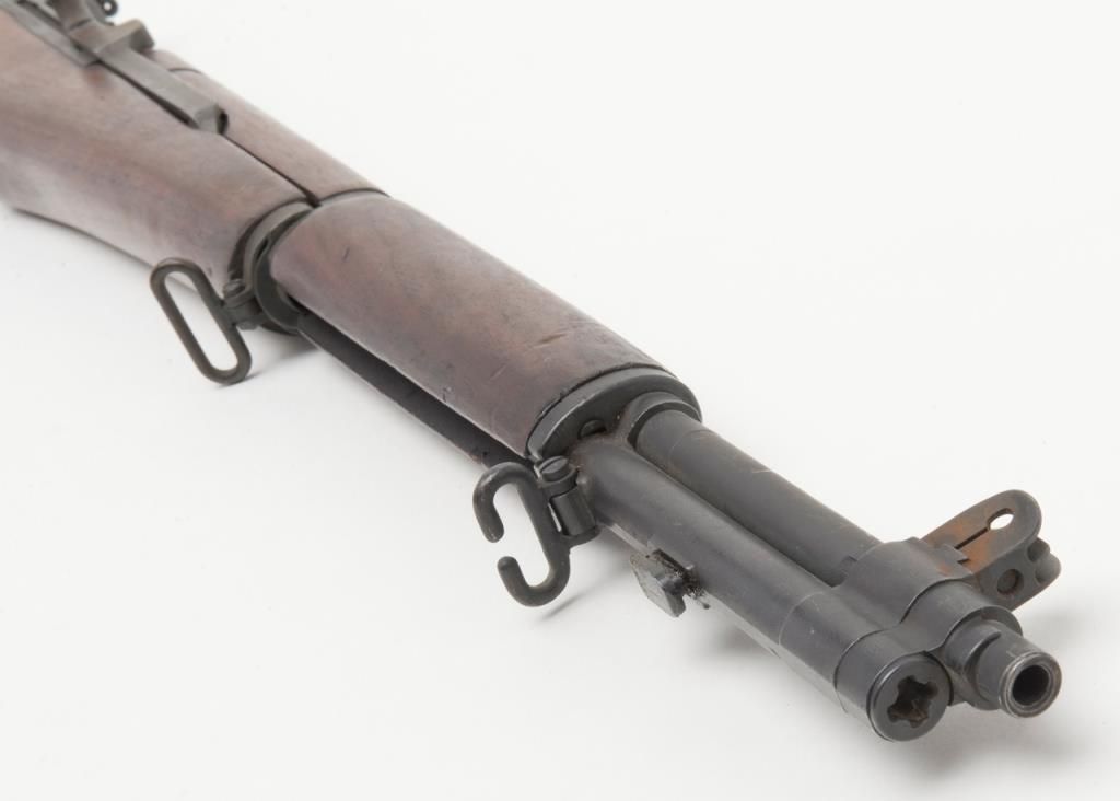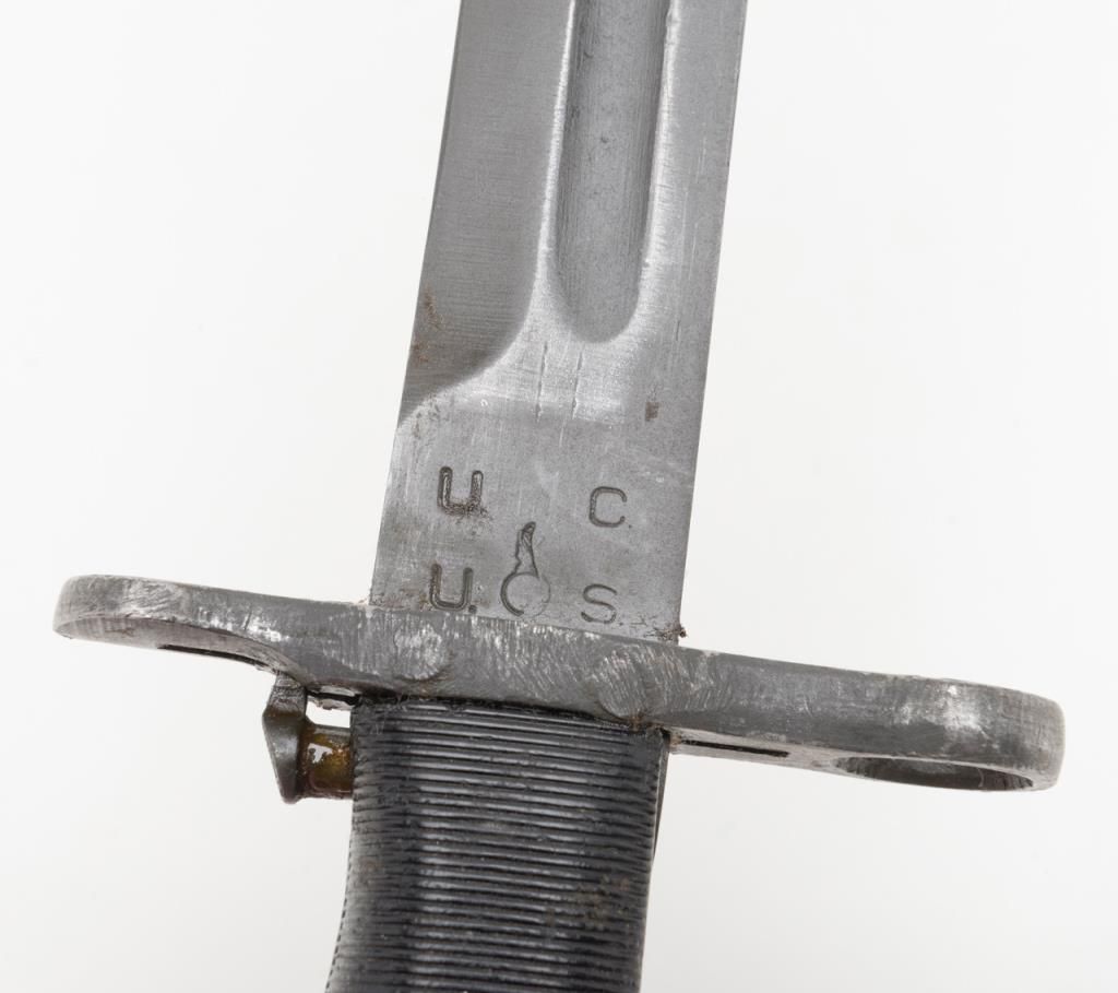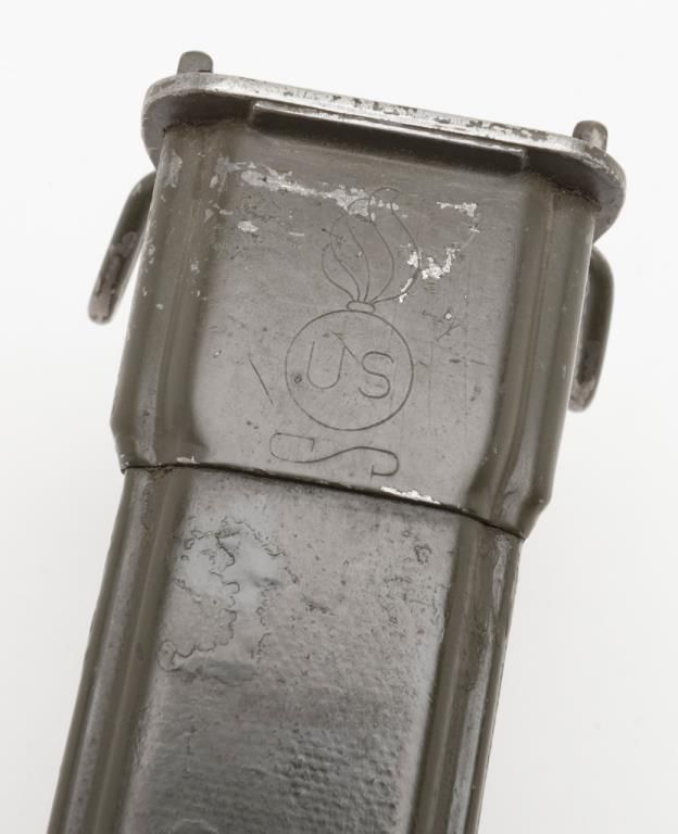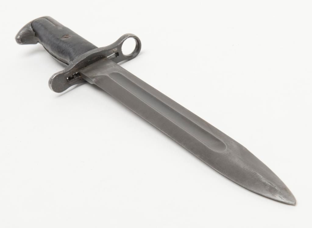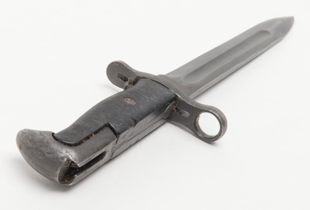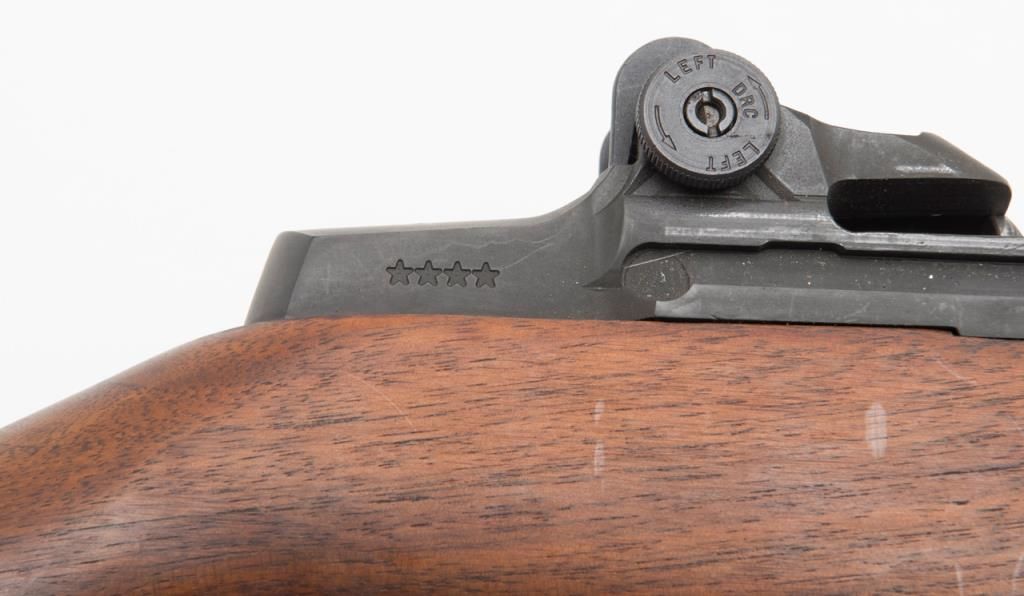 Springfield Armory U.S. M1 Garand semi-automatic rifle, caliber 30/06, Serial #7007261. The rifle is in overall very good condition with a 24” SA barrel dated “2 54”. The rifle retains the majority of its military finish with slingswivels, bayonet lug and metal trap butt plate. There is moderate surface rust on the front sight which may clean. The action retains nearly all of its finish and is embossed with four stars at right rear of the action. The smooth wood stocksshow no visible cartouches but are otherwise in very good condition with typical mars and compressions. The Bore is very good, the action crisp and markings sharp on this Garand. It includes a 15” bayonet and scabbard with the USFlaming Bomb insignia displayed. (C+R/PPT). Est.: $600-$1,200.