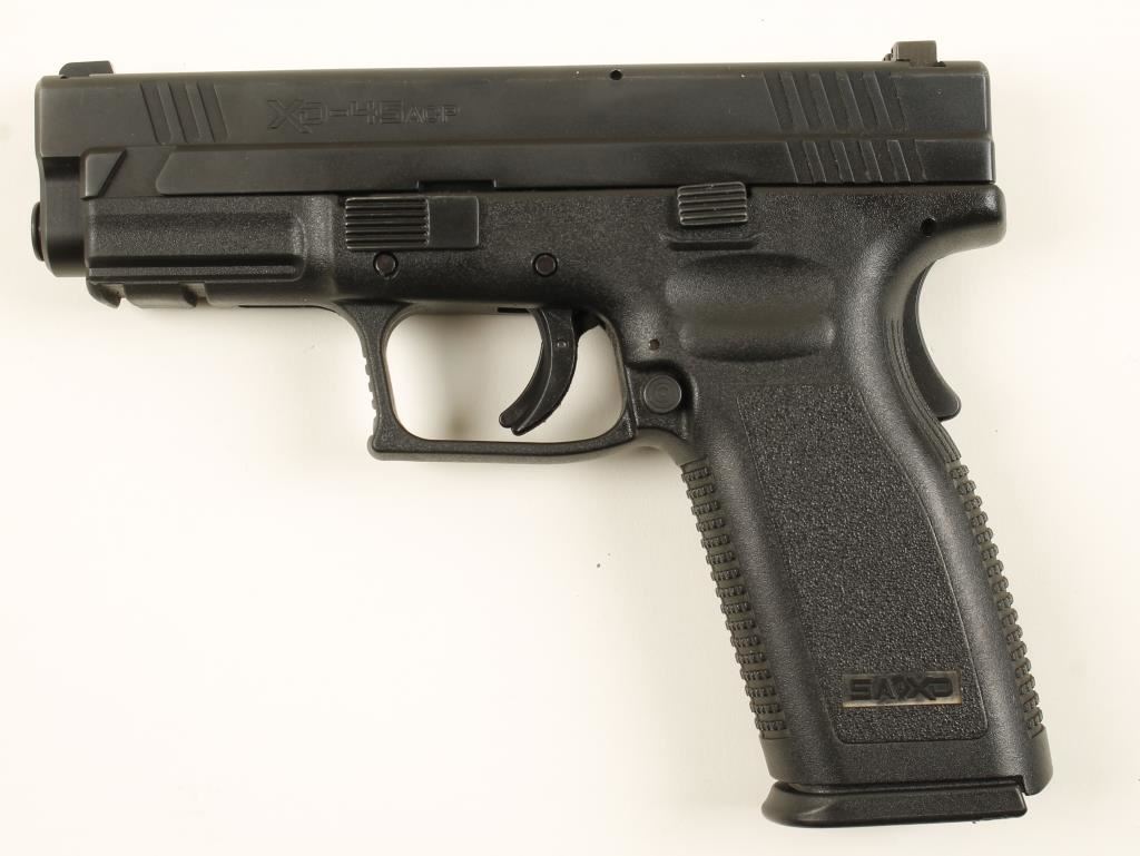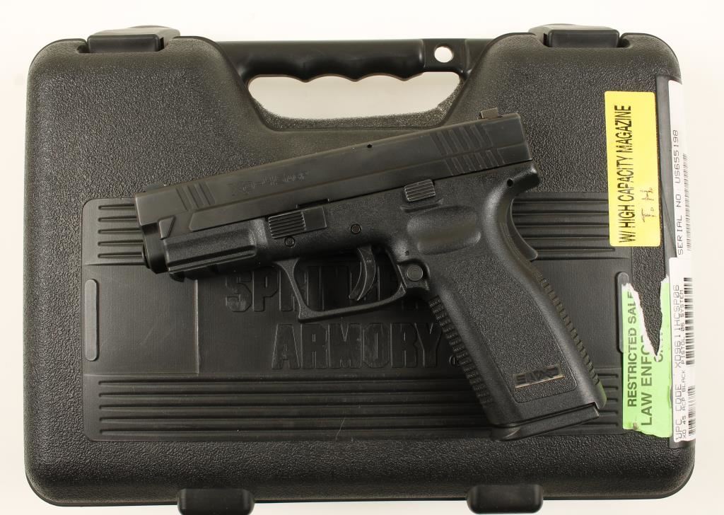 Parkerized hammerless double-action only semi-automatic pistol with a 4" barrel in factory case with documents, cable lock, trigger lock cleaning rod, hex wrench and a spent case. Also has factory magazine loader and a 2-mag FRP belt pouch. includes one 13 rd mag and Trijicon night sights. Bore is pristine. Action works well. Condition is excellent. *Modern Firearm*