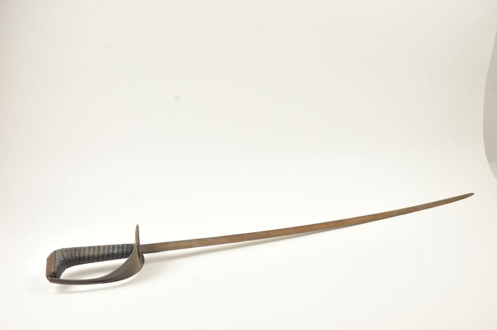 “Springfield Armory” marked and 1906 dated experimental cavalry sword #52 on the ricasso. No scabbard. Wire wrapped over shark skin grip. As found uncleaned and “Out of the Attic” condition from estate. Seldomfound. Est.: $175-$350