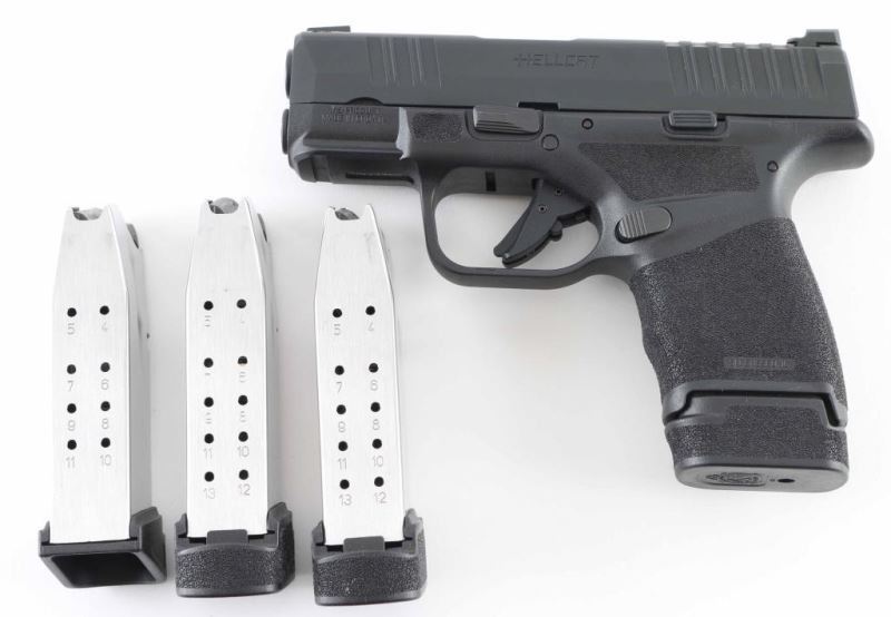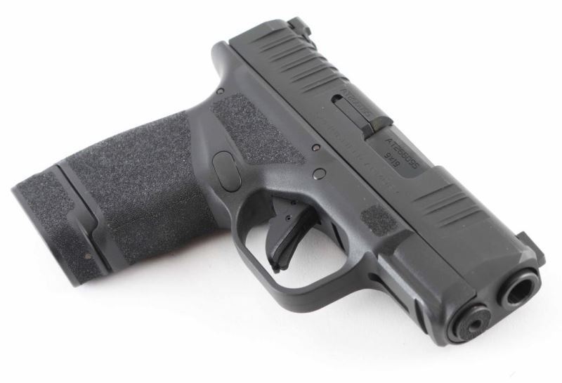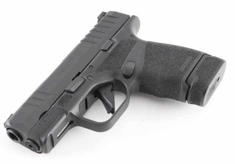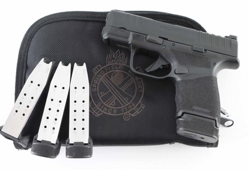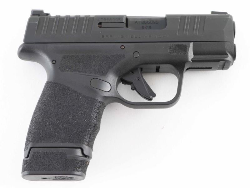 Croatian semiautomatic pistol imported by Springfield Armory, Geneseo IL. Features 3" barrel, fixed sights in dovetails, white dot front night sight, white outline "U" shaped rear sight, striker fired, manual safety in trigger, loaded chamber indication, accessory rail on dust cover. All black finish; polymer frame. Night sight insert is bright. Bore is excellent condition. Overall external condition is like new, with little evidence of handling. Includes Springfield Armory black nylon zipper pouch, (1) flush fit magazine with pinky rest, (3) extended magazines. Condition is NRA Excellent - like new *** Modern Firearm ***