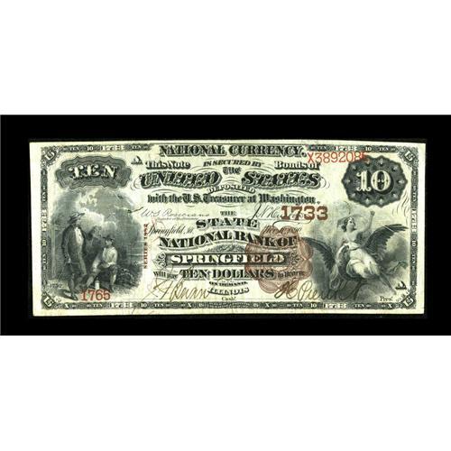 <B>Springfield, IL</B></I> - $10 1882 Brown Back Fr. 484 <B>The State NB</B></I> Ch. # 1733<BR>The paper and signatures are particularly attractive for this moderately circulated issue. The overprint is bold and the margins solid. <B>Very Fine.</B></I><BR><I>From The Lincoln Collection</B></I><BR><BR><b>Shipping:</b> Coins & Currency (<a target="_blank" href="http://www.heritageauctions.com/common/shipping.php">view shipping information</a>)