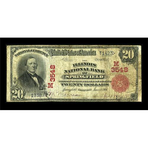 <B>Springfield, IL</B></I> - $20 1902 Red Seal Fr. 641 <B>The Illinois NB</B></I> Ch. # (M)3548<BR> An attractive Red Seal from this state's capital city. The last Red Seal to pass through auction was in early 2005. <B>Very Good</B></I>, with a solid red overprint.<BR><BR><b>Shipping:</b> Coins & Currency (<a target="_blank" href="http://www.heritageauctions.com/common/shipping.php">view shipping information</a>)