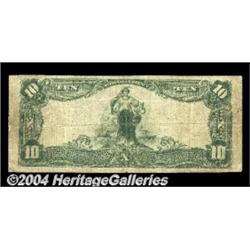 Springfield, KY - $10 1902 Plain Back Fr. 627 The First NB Ch. # 1767Despite a long issue, this is a very tough bank, with the Kelly census showing just three large examples. Fine. <BR><BR><B>Important notice:</B> Heritage usually auctions material at the rate of 200-250 lots per hour. On some occasions eBay Live bid software or the Internet may not be able to keep up with the pace of the auction. We recommend placing a realistic absentee bid now as insurance to avoid disappointment. Occasionally the auctioneer may eliminate or reject an eBay Live bid, and the auctioneer may also reopen a lot after the close of the eBay live bidding (usually because we missed an audience bid), and may reject your bid even if it shows you as the winning bidder. By bidding via eBay Live, you agree that Heritage may award the lot to another bidder at its sole discretion under the circumstances described above or any other reasonable circumstances. Since eBay bids are not shown to us until we open the lot on the floor, we treat those bids just like floor bids. In most cases the floor responds before the eBay bid is presented to us, due to Internet lag time, so for consistency we have made it a policy that floor bids are always considered first over tie eBay live bids. Also please note that all Heritage lots purchased through eBay Live carry a 20% Buyer's Premium. Please make sure you read the Terms and Conditions before you bid. <BR><BR><B>IMPORTANT ANNOUNCEMENT ABOUT RESERVES:</B> Heritage now divulges all reserves on its web site 7 days before every auction. If you want to know whether the reserve on this lot has been met, and if not, what the reserve amount is, please visit this lot page on the HeritageCoin.com web site, or email: bid@HeritageGalleries.com