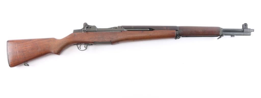 US military semiautomatic rifle manufactured February 1943. SA barrel dated 2-43, D28290-14-SA, on the side of the trigger group. hammer marked C46008-7 SA, Safety marked SA, op rod marked 6535382 SA, receiver marked 3 11 C SS and D 28291 17 and the bolt is marked D28287-12SA S04. Arsenal reworked. Features parkerized finish, blue barrel, wood stock & hand guards, 24" barrel, adjustable sights with protected front blade & protected rear peep, fixed magazine for en-bloc clip, manual safety Handguard and froe stock a darker than the shoulder stock , "P" proof behind triggerguard, ordnance crossed cannons cartouche on left stock with "S.A. E.Mc.F in square next to it. (Colonel Earl McFarland worked as an arms inspector from June, 1942 to July, 1943) Correct for this rifle. .Bore is very good condition, lightly frosted, strong rifling. Metal parts retain 95% medium gray/blue finish. Shows edge losses & handling marks. Wood is very good/sound, the usual minor scratches/dings. A correct mid WW2 rifle