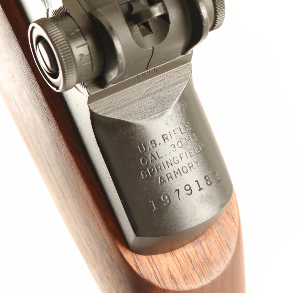 U.S. Military clip-fed semi automatic service rifle chambered in .30-06 Springfield, circa 1941. Features a parkerized finish, 24" unmarked barrel, winged blade front sight, adjustable rear aperture sight, bayonet lug, SA marked bolt & trigger group, smooth trigger sling swivels, checkered metal trapdoor buttplate, smooth walnut handguard and pistol grip shoulder stock with no visible markings. Rifle retains approximately 98% of it's arsenal refinish showing very little wear. Action is strong, bore is excellent, and wood stocks are fine. Condition is excellent. ***C&R Firearm*** ***Modern Firearm***