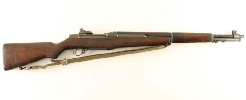 U.S. Military contract clip fed semi-automatic service rifle chambered in .30-06 Springfield, manufactured circa 1944. Features a parkerized finish, 24" barrel marked "S-A-6-47", shrouded blade front sight, adjustable rear aperture sight, bayonet lug, smooth trigger, manual safety, green canvas sling, "NM" marked charging handle, "SA" marked bolt & trigger housing, smooth walnut handguard and pistol grip shoulder stock with checkered metal trapdoor buttplate. Rifle retains approximately 88% of it's arsenal refinish with the majority of the finish loss on the gas tube. Action is strong, bore is good, and the wood stocks are fair to good with numerous blemishes. Condition is NRA Good++. ***C&R Firearm***