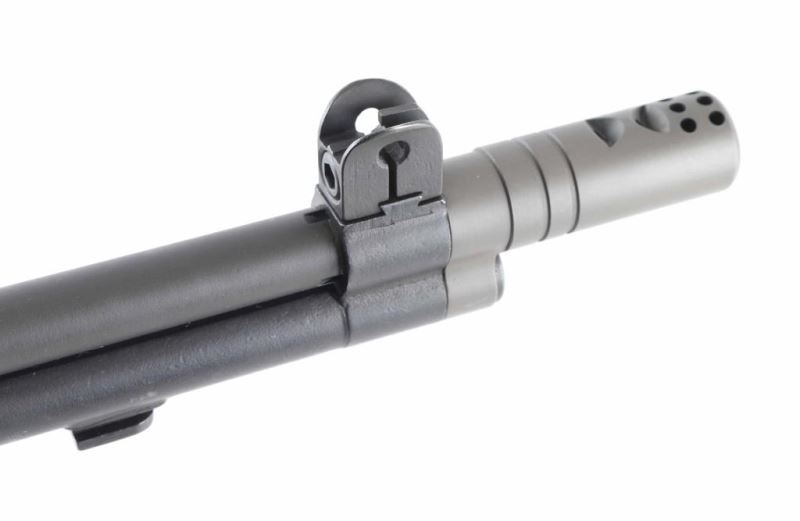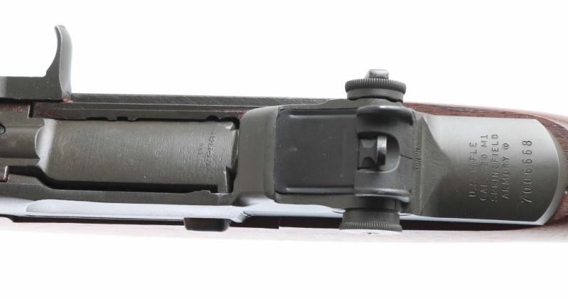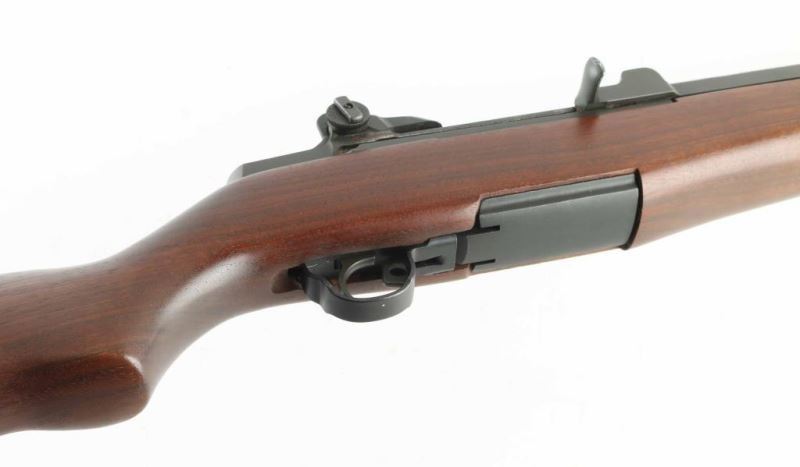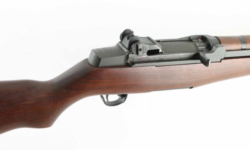 Commercial copy of the US military semiautomatic rifle with "Tanker" length barrel, made with many original USGI parts. Features parkerized finish, wood stock & hand guards, 18" barrel, muzzle brake, adjustable sights with protected front blade & protected rear peep, locking bare rear sight, fixed magazine for en-bloc clip, manual safety. Bore is good to very good condition. Retains 95% coverage of dark even parkerizing. Wood is very good to excellent condition. Condition is NRA Excellent *** Modern Firearm ***