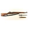 Rebuilt WWII era U.S. military clip-fed semi-automatic service rifle chambered in .30-06 Springfield, manufactured circa 1942. Features a parkerized finish, undated 24" barrel, shrouded blade front sight, adjustable lock bar rear aperture sight, smooth trigger, milled trigger guard, detachable M1 bayonet with converted M7 scabbard, black nylon sling, piling swivel, smooth walnut handguards and semi-pistol grip shoulder stock with trapdoor metal buttplate ( containing M3A1 combination tool, oiler & grease pot). The marker code “SA” is found on many of the components including the bolt, operating rod, trigger housing, & hammer and all observed drawing numbers are WWII period. The barrel lack the typical markings and in their place has a stamped [flaming bomb]. The stock is marked with [crossed cannons] and circled “P”. Rifle retains approximately 40% of its military finish showing heavy wear with some pitting, a browning patina and scattered rust tones. Action is mechanically sound, the bore is bright with sharp rifling & scattered light pitting, the markings are clear and the walnut stocks are good to very good with blemishes & small fills. Op rod is uncut early style. Buttplate is early style with no latch for compartment door. Condition is NRA Good. ***C&R Firearm***