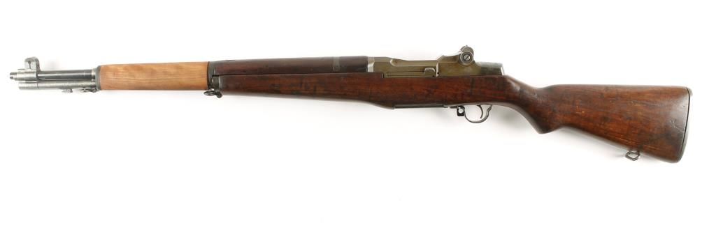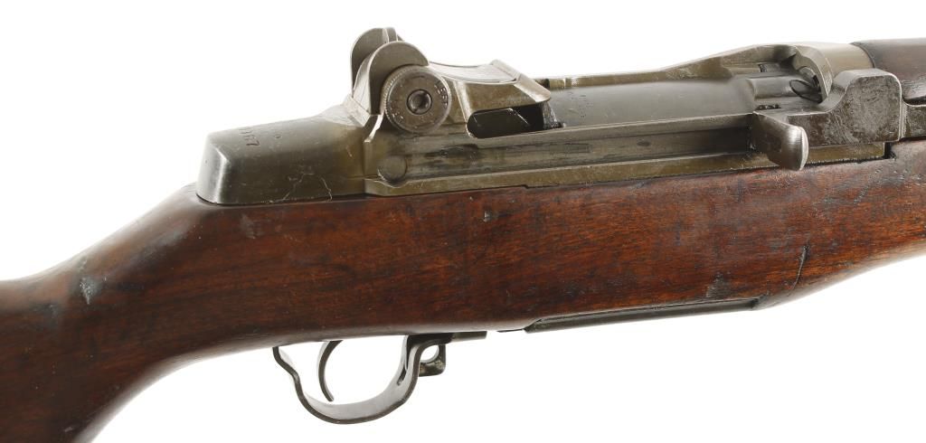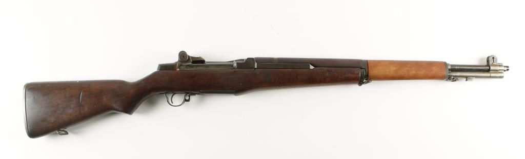 Semi-auto WWII battle rifle made in the Springfield Armory. Comes with cleaning kit inside the butt. The buttstock has dings and scratches as does the rear handguard. The front handguard appears to be a replacement. All metal surfaces are covered with a sticky substance. The gas cylinder has lost much of its finish. The receiver has a greenish tinge (from cosmoline). The trigger guard has lost some bluing from wear. Bore is bright and shiny. Condition is fair to good.
