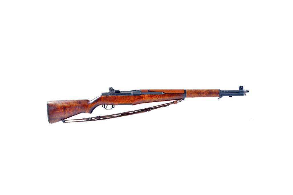 Parkerized finish, refinished stock with no cartouche, newer hand guard, standard 24" barrel wiSemi-auto military combat rifle that has been restocked. Called "the best combat rifle the world has ever known" Parkerized finish, refinished stock with nocartouche, newer hand guard, standard 24" barrel with issued sights. Includes leather sling. Good bore and action. Condition: Very good as rebuilt.