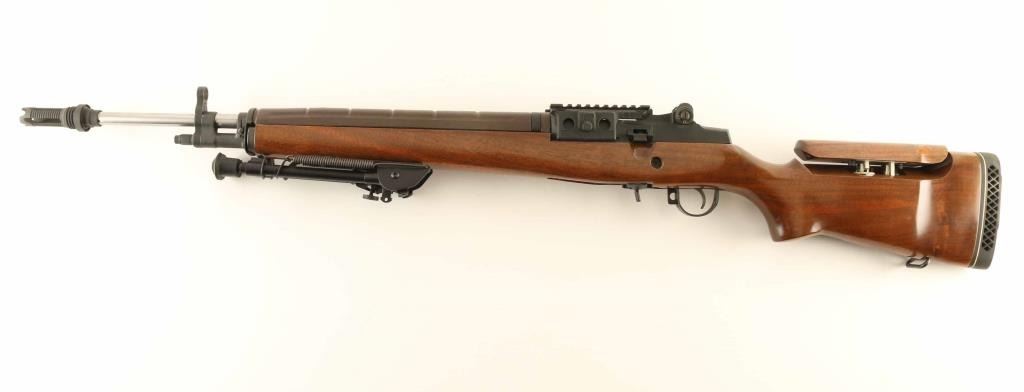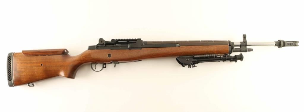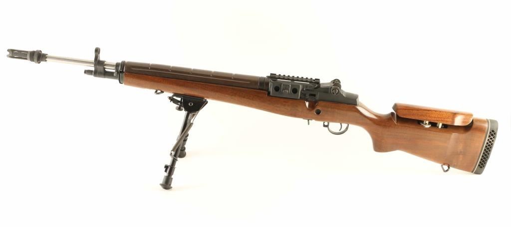 M21 or XM21 rifle clone chambered in 7.62x51mm Nato, built utilizing a 2004 vintage M1A Loaded rifle as a catalyst. The XM21 was a M14 platform rifle modified to meet the demand for a quality sniper rifle during the Vietnam War. Later this rifle was redesignated as the M21 Sniper Weapon System. This clone features a matte black finish, 22" stainless steel N.M. barrel, YHM Phantom QD flash hider, Smith Enterprises gas block front sight with elevation adjustable post, adjustable rear aperture sight, installed A.R.M.S. optic rail, two stage trigger, manual safety, no magazine, Harris 1A2 Ultralight 8-12" bipod with notches, adjustable gas system, brown synthetic handguard, and fiberglass bedded oversized walnut stock with adjustable cheek piece & While Line recoil pad. Rifle retains approximately 95% of it's matte black finish showing light handling marks/scuffs and action wear on & from the moving parts. Action is smooth, the bore appears excellent but dirty, and the wood stock is near fine. Condition is near NRA Excellent. ***Modern Firearm***