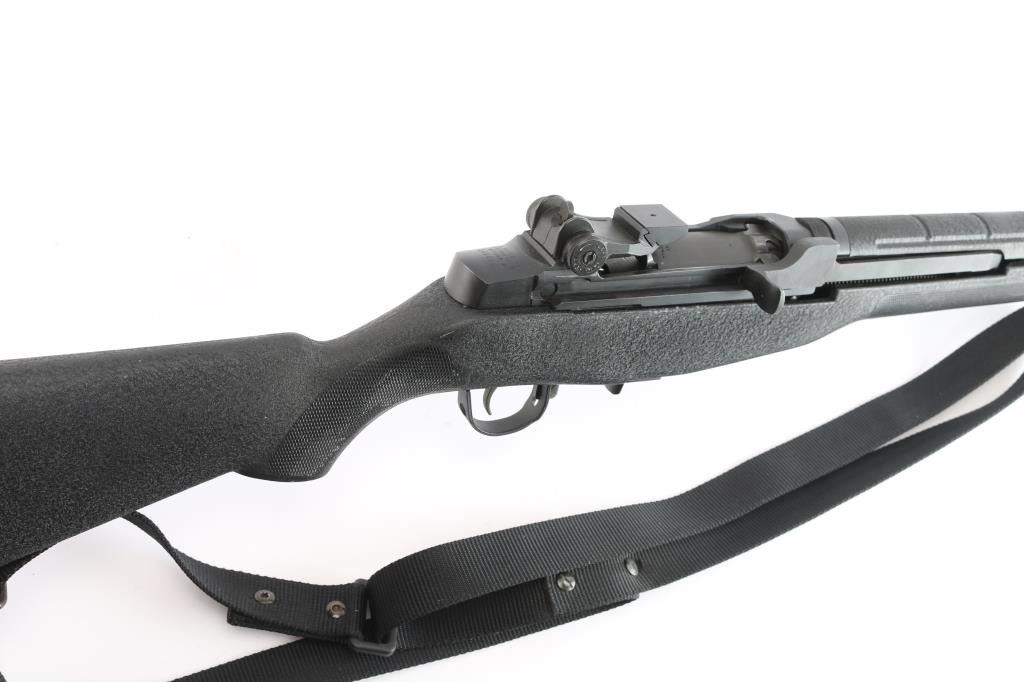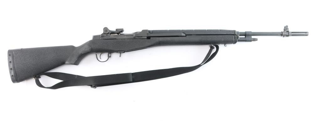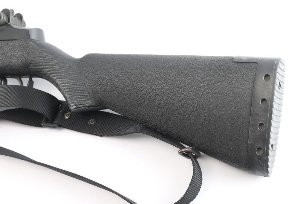 High Quality American made gas operated piston driven semi-automatic rifle chambered for 7.62x51mm. Rifle features a parkerized finish, a 22" barrel, 3" slotted flash hider, blade front sight with protective ears, adjustable aperture rear sight, optic mounting block installed in rear sight dovetail, smooth curved trigger, manual blade safety at front of the trigger guard, SA bolt, paddle magazine release, and accepts detachable magazines (none provided). The black composite furniture consists of a semi-pistol gripped shoulder stock with checkering at the wrist, black composite hand guard, sling swivels on the forend and shoulder stock, sling stud on the forend, and black serrated solid rubber recoil pad. The original parkerized metal finish retained is approximately 98% with light blemishes, white material transfers on the left side of the receiver and receiver ring, and light edge wear. The metal displays no rust, or metal deformation. Bore is bright with strong rifling, and the composite furniture is in good condition with losses in the magazine well, edge wear, and flattening to some of the checkering. The action is smooth and crisp. This rifle includes black nylon sling.