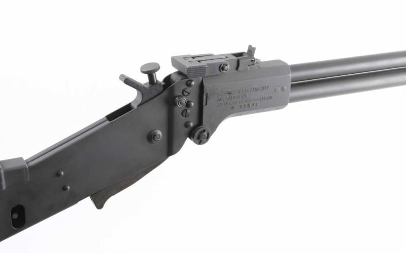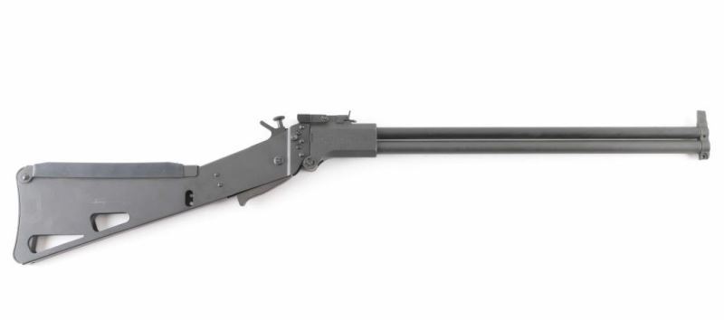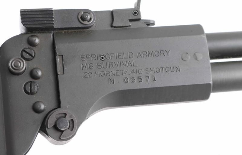 SN: M05571 Combination Rifle/Shotgun. Virtually identical to the M6 Aircrew survival weapon. 18.25" barrel. Front blade, rear v-notch, peep flip sights. Break-top action. Stamped parkerized steel. Squeeze bar trigger. Rifle barrel, over the .410 barrel. Action is crisp/tight. Bores appear excellent/bright. Parkerized finish is near excellent with some very minor scuffs/scratches. NRA Condition-Near excellent. Modern Firearm.
