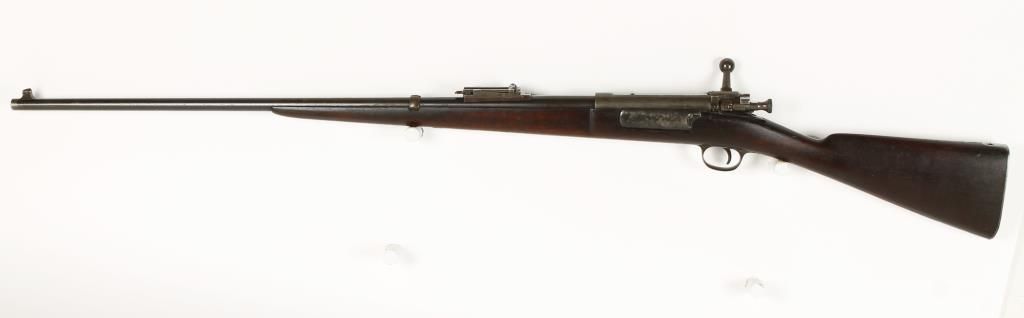 Bolt action Military rifle altered to the 1896 with slight sporterization. Stock has been cut down and shows plugs where sling swivels once existed. Receiver is dated 1894 and maintains original sights. Very good bore and action. Condition: Good overall. *Antique Firearm*