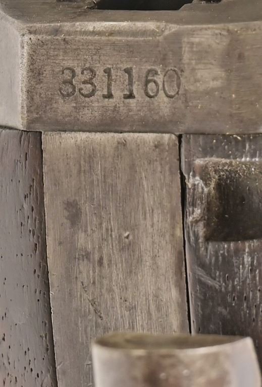 SN 331160. 32.5" barrel, good bore. Working action. wood is solid with slight cartouche visible. Antique.