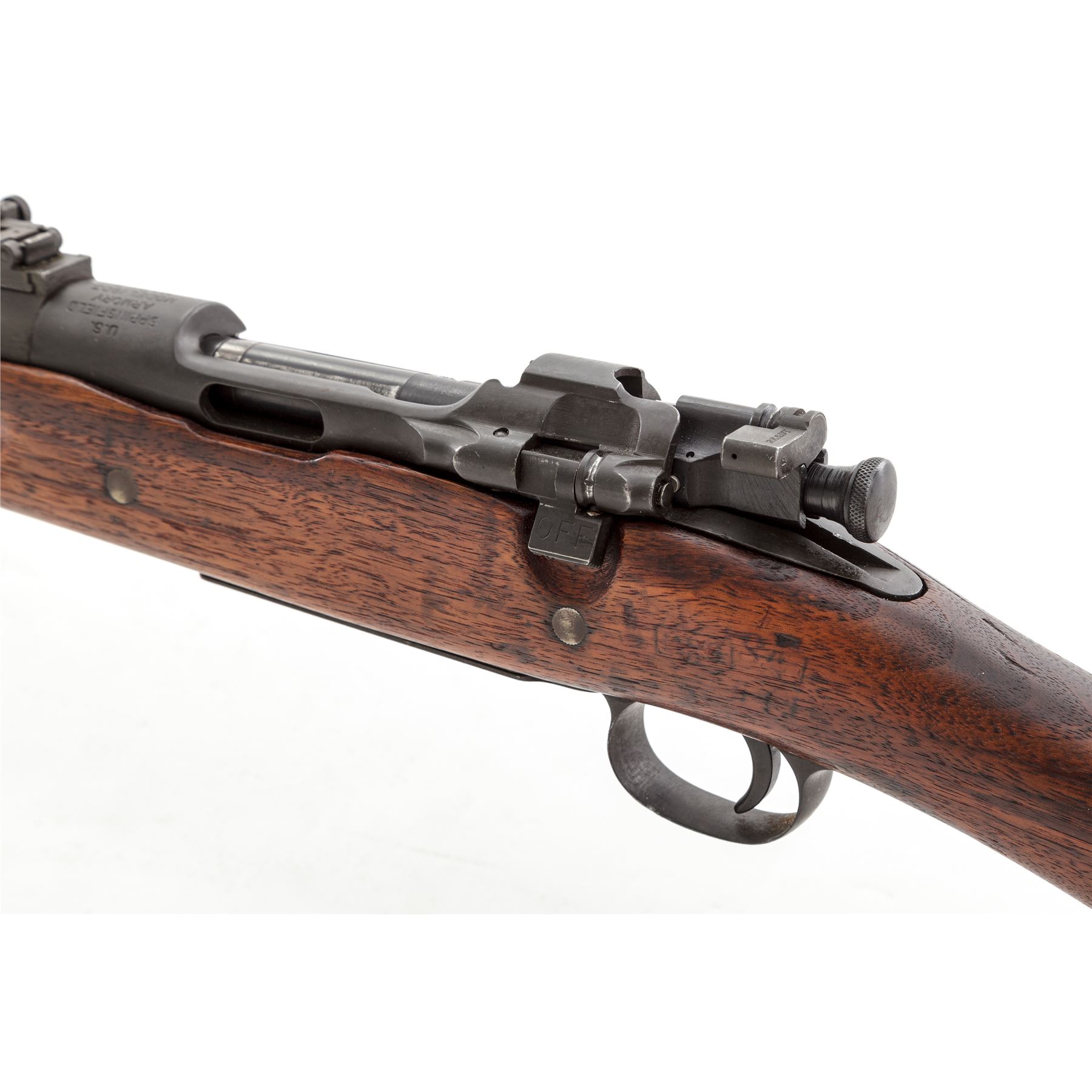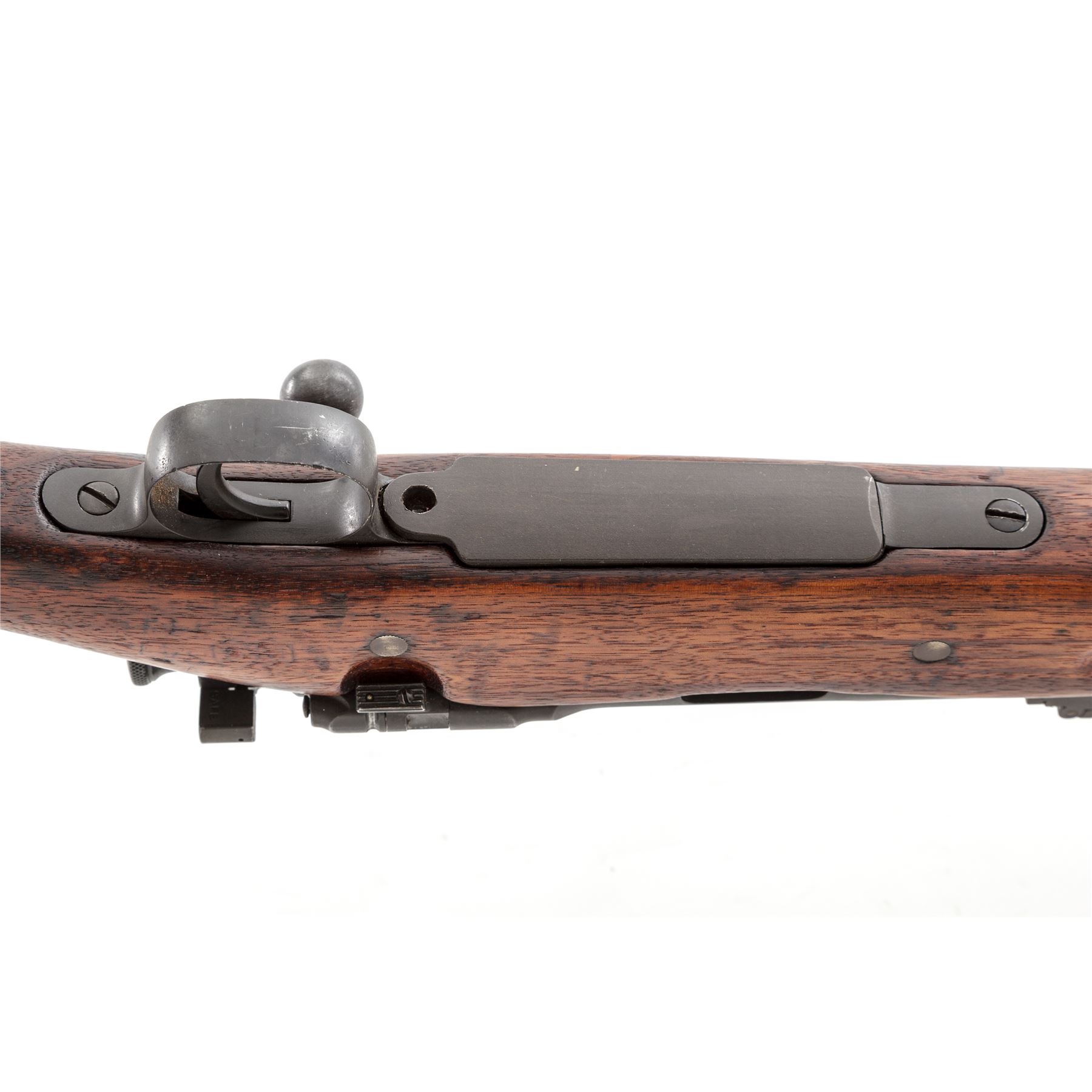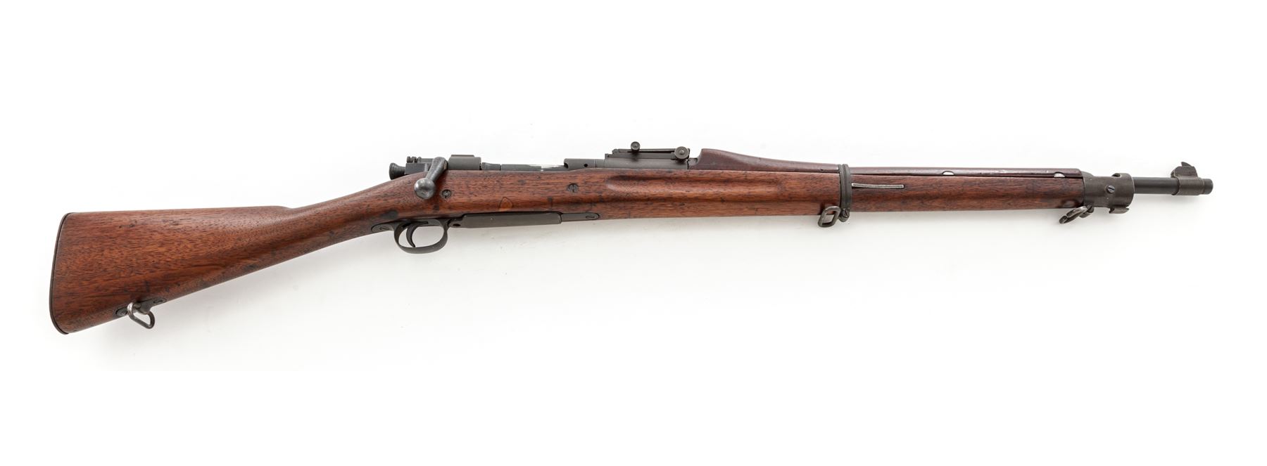 Springfield Model 1903 Mark 1 Bolt Action Rifle, #1130213, .30-06 cal., 24'' barrel, parkerized finish ,walnut stock, blade front sight and adjustable folding leaf rear sight. Marked on receiver ring ''U.S.SPRINGFIELD ARMORY MODEL 1903 MARK 1'', and on barrel behind front sight ''S-A/(flaming bomb)/7-42''. ''R'' stamp on bolt handle, with early handguard. There are faint boxed cartouches on left side of stock wrist and a faint circle ''P'' firing proof on underside of wrist. Condition overall is very good with the metal retaining over 90% finish. Stock has an arsenal repair and burn mark on right side, otherwise, wood is very good showing sanding and an applied semi-gloss finish. Action is smooth, bore is very good. Includes a Civilian Marksmanship Program Certificate of Authenticity and CMP shipping box. Est.: $700-$900. (C&R)