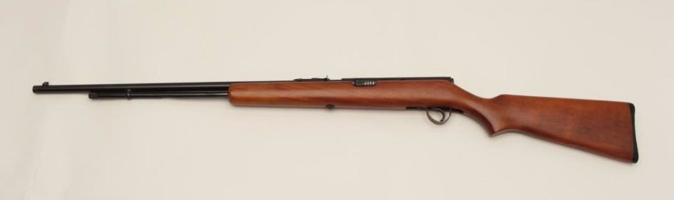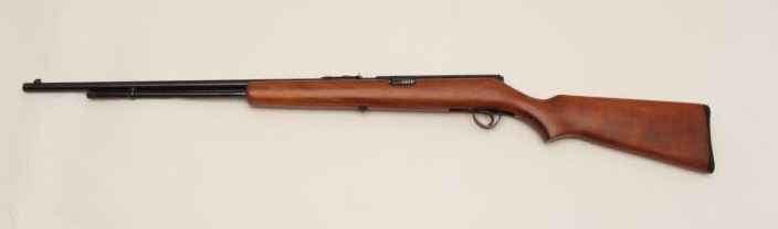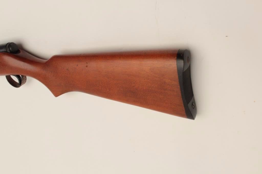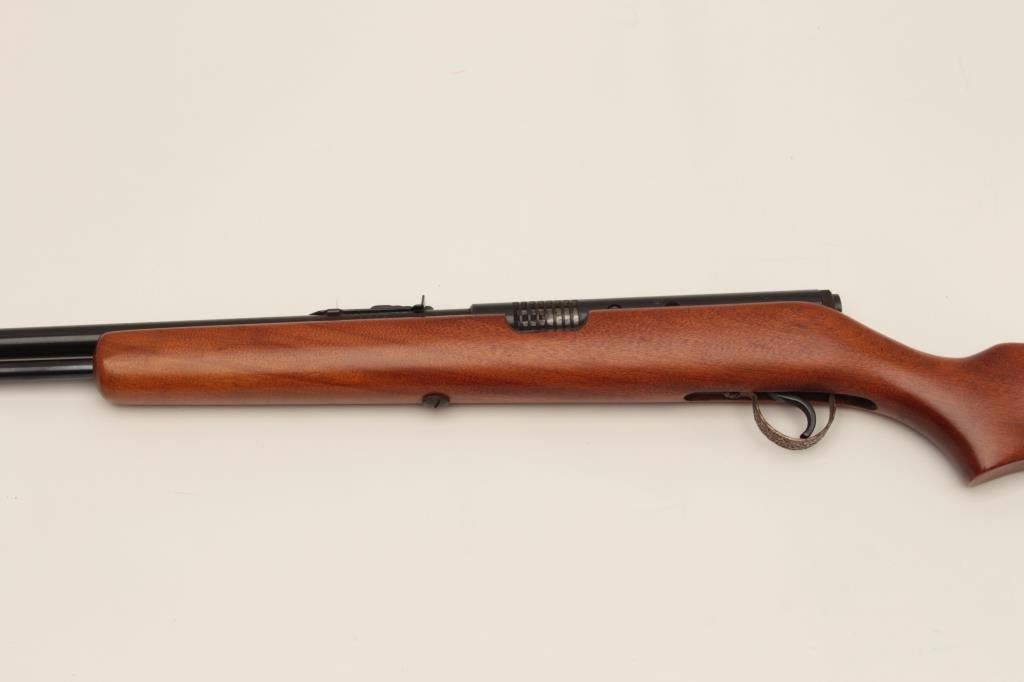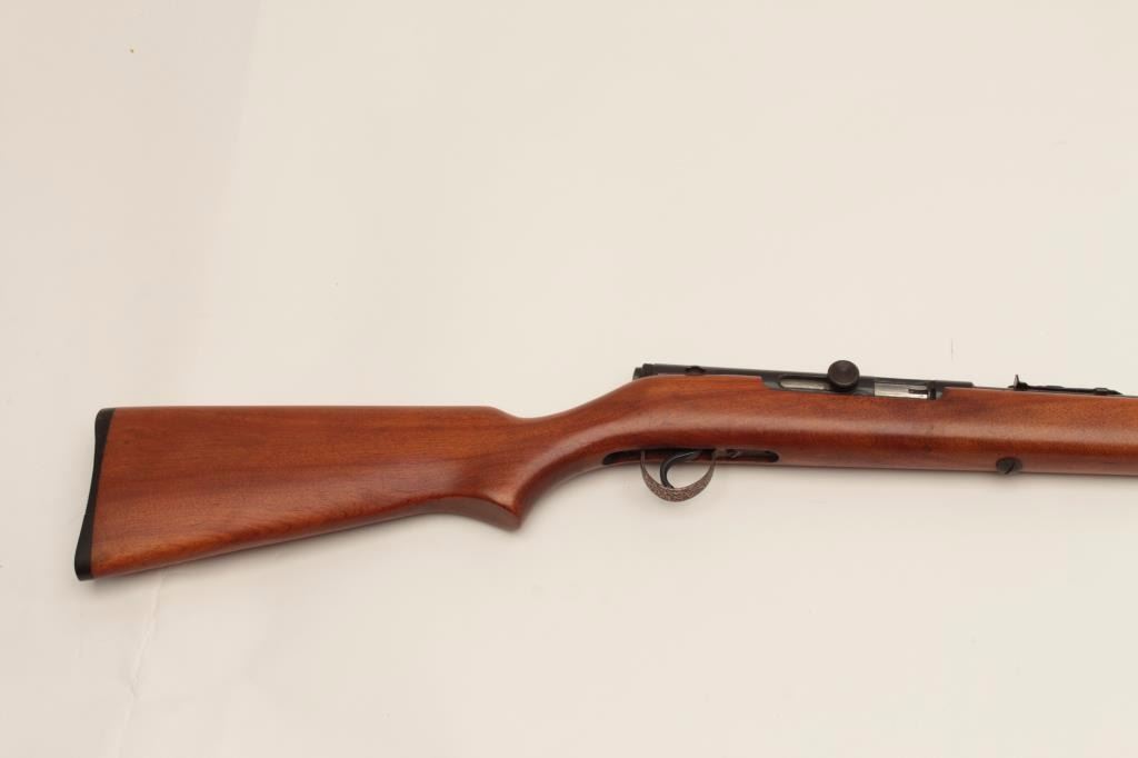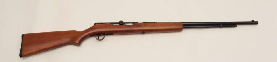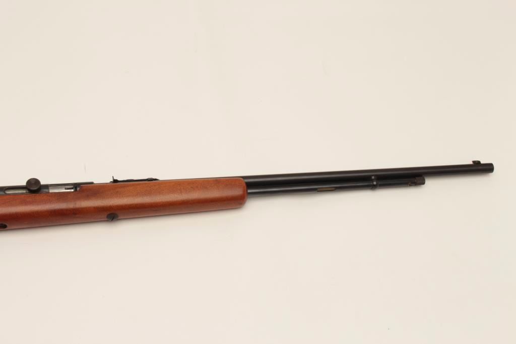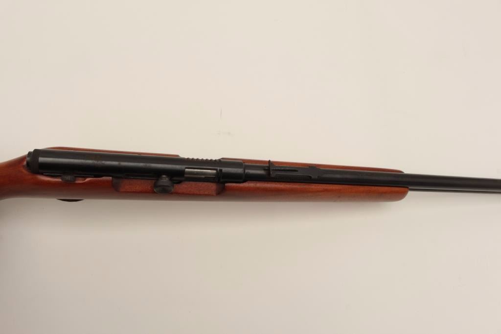 Springfield Model 87A semi-automatic rifle, .22LR caliber, 24” round barrel, blued finish, wood stock, no visible S/N, in overall very good to near fine condition displaying the majority of its originalfinish, crisp action and markings, very good bore, near fine stock. (Modern). Est.: $100-$200.