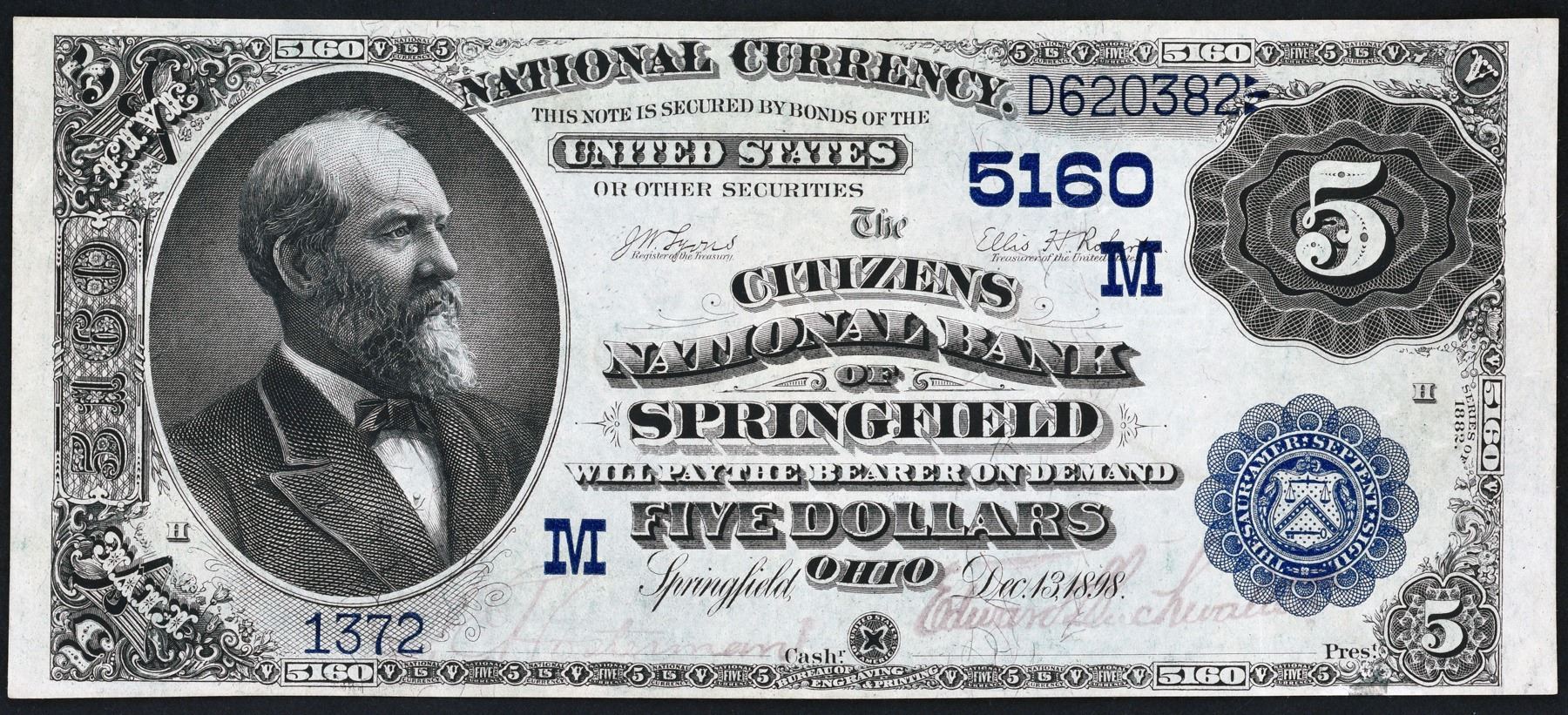 Title: Springfield, Ohio - $5 1882 Date Back Fr. 537 The Citizens National Bank of Springfield Ch. # 5160 Choice Very Fine