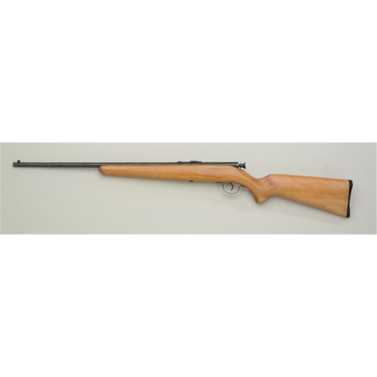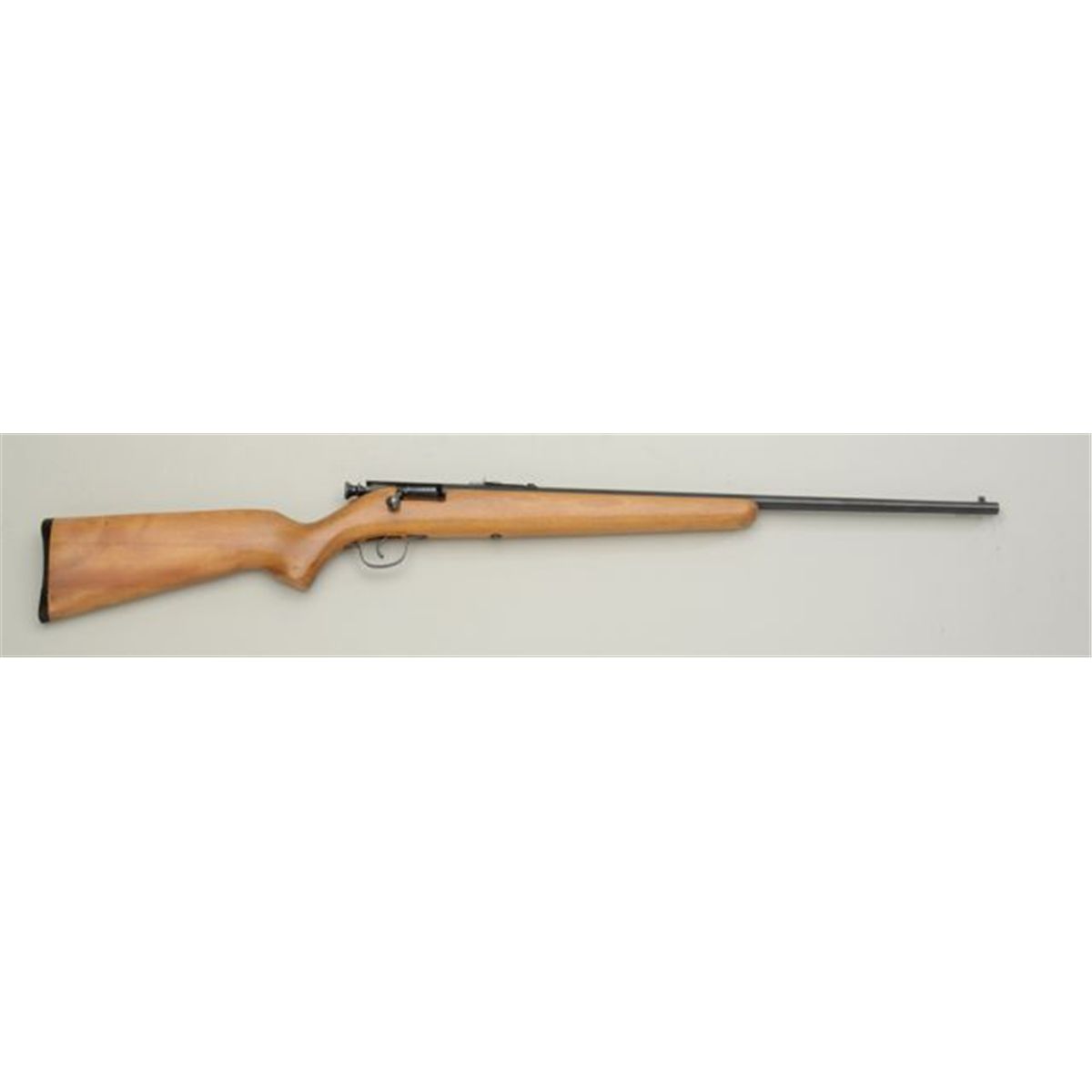 Springfield Savage bolt-action rifle, Model 120A, .22 short, long or long rifle cal., 23-1/2” round barrel, blue finish, blonde wood stock, #NVSN. This rifle is in overall very good + condition showing considerablemuted blue finish, very good bore and action, fine wood stock. Est.: $75-$125