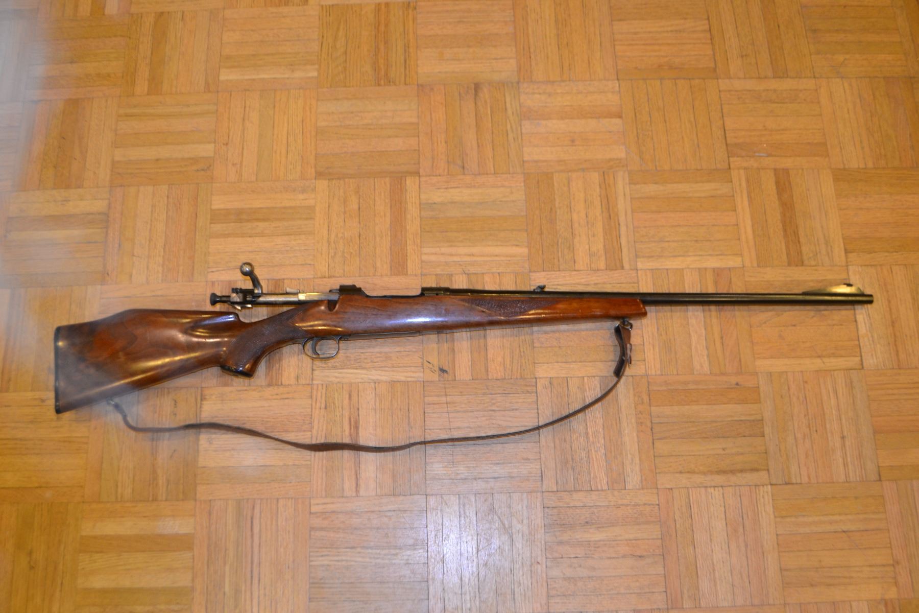 This bolt-action Springfield Sporterized 1903 Mark I is chambered in 30-06, has been well kept and includes a leather sling.