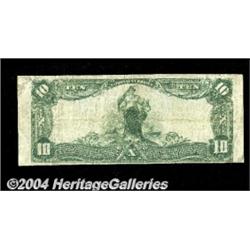 Springfield, VT - $10 1902 Plain Back Fr. 624 The First NB Ch. # 122This is a scarce bank in large size. The top and bottom margins have the "New England" trim often associated with earlier issues of Nationals. The stamped signatures are light, yet readable. About Very Fine. <BR><BR><B>Important notice:</B> Heritage usually auctions material at the rate of 200-250 lots per hour. On some occasions eBay Live bid software or the Internet may not be able to keep up with the pace of the auction. We recommend placing a realistic absentee bid now as insurance to avoid disappointment. Occasionally the auctioneer may eliminate or reject an eBay Live bid, and the auctioneer may also reopen a lot after the close of the eBay live bidding (usually because we missed an audience bid), and may reject your bid even if it shows you as the winning bidder. By bidding via eBay Live, you agree that Heritage may award the lot to another bidder at its sole discretion under the circumstances described above or any other reasonable circumstances. Since eBay bids are not shown to us until we open the lot on the floor, we treat those bids just like floor bids. In most cases the floor responds before the eBay bid is presented to us, due to Internet lag time, so for consistency we have made it a policy that floor bids are always considered first over tie eBay live bids. Also please note that all Heritage lots purchased through eBay Live carry a 20% Buyer's Premium. Please make sure you read the Terms and Conditions before you bid. <BR><BR><B>IMPORTANT ANNOUNCEMENT ABOUT RESERVES:</B> Heritage now divulges all reserves on its web site 7 days before every auction. If you want to know whether the reserve on this lot has been met, and if not, what the reserve amount is, please visit this lot page on the HeritageCoin.com web site, or email: bid@HeritageGalleries.com