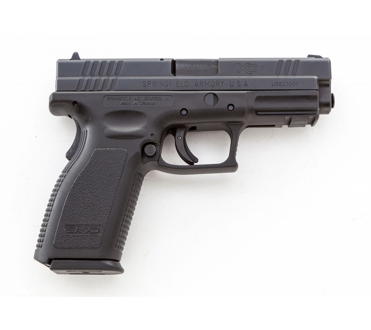 Springfield XD-9 Compact Semi-Automatic Pistol, #US823508, 9mm, 4'' barrel, matte finish, with three 10-round magazines. Condition is excellent, appearing as new, in its original box. Est.: $450-$600. (Modern)
