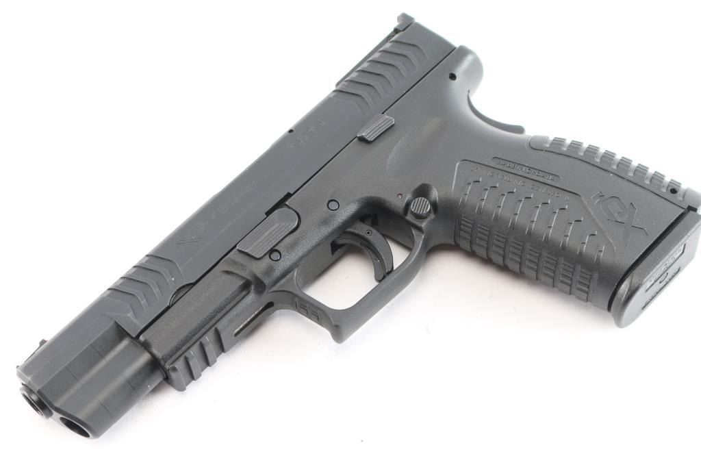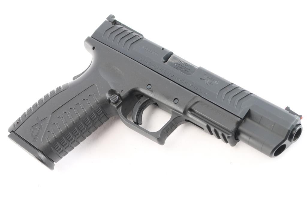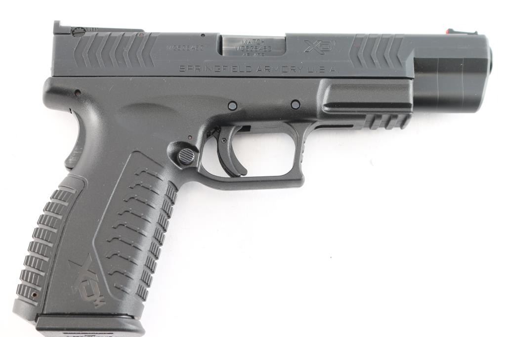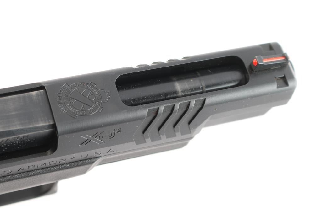 'Competition Series". Croatian manufactured semiautomatic pistol imported by Springfield Armory, Geneseo IL. Features matte black finish, black polymer frame with accessory rail, 5.25" Hammer Forged Steel, Melonite Finish, 1:16 match barrel, red fiber optic front, micro adjustable square notch rear sights, striker fired, cocking indicator, loaded chamber indicator, manual safety in trigger, grip safety, ambidextrous magazine release. ported slide. Condition is like new, excellent condition with limited signs of handling, bore is pristine. Includes (4) factory 13-rd flush magazines, fitted hard case, holster, magazine pouch, mag loader, two additional back straps, lock and manual.