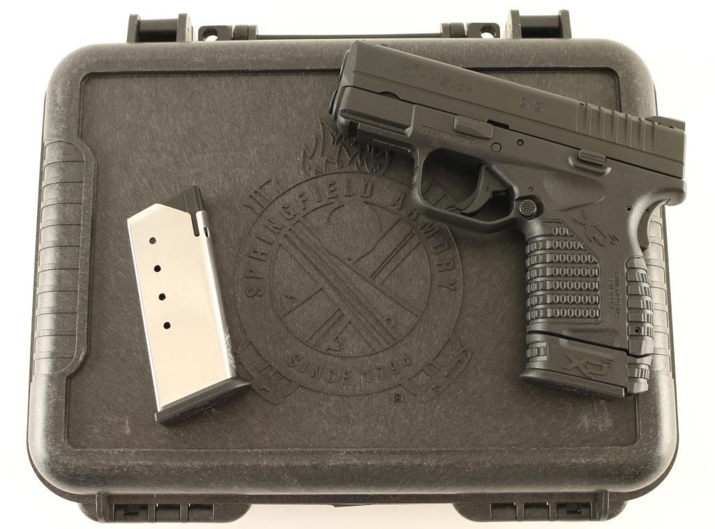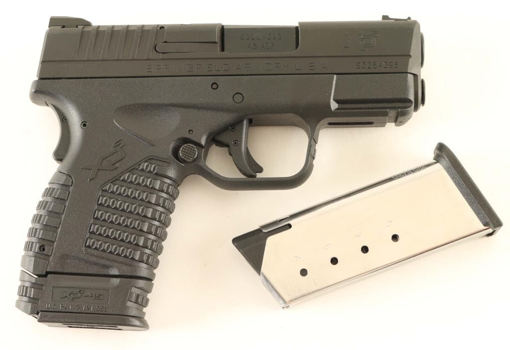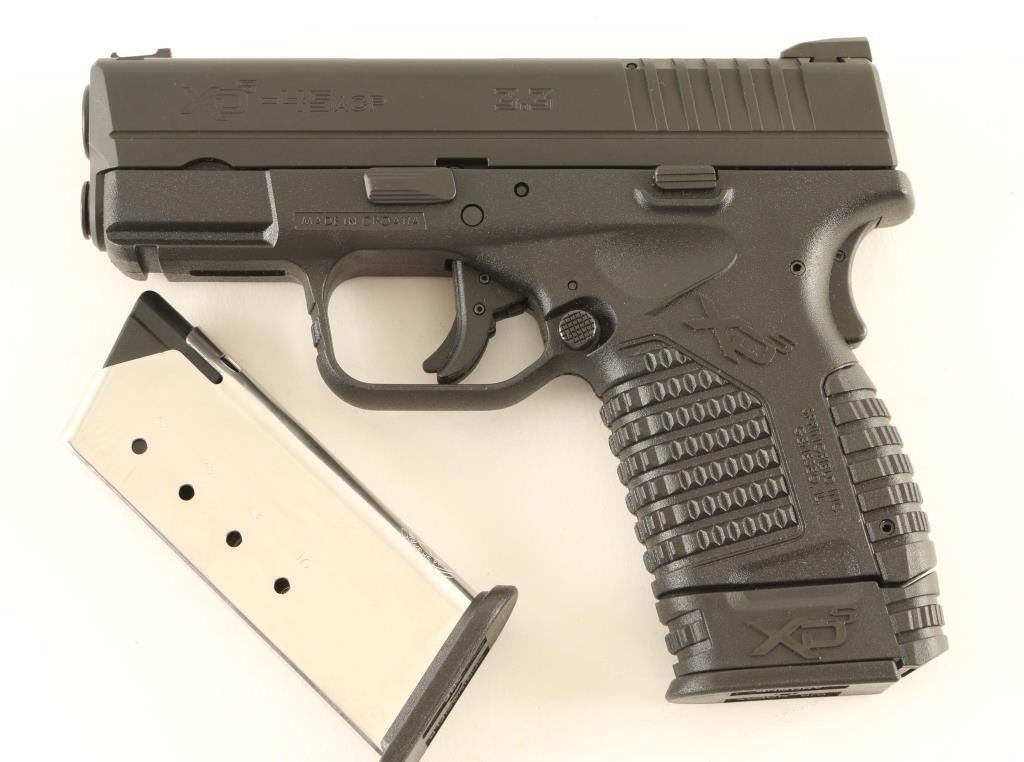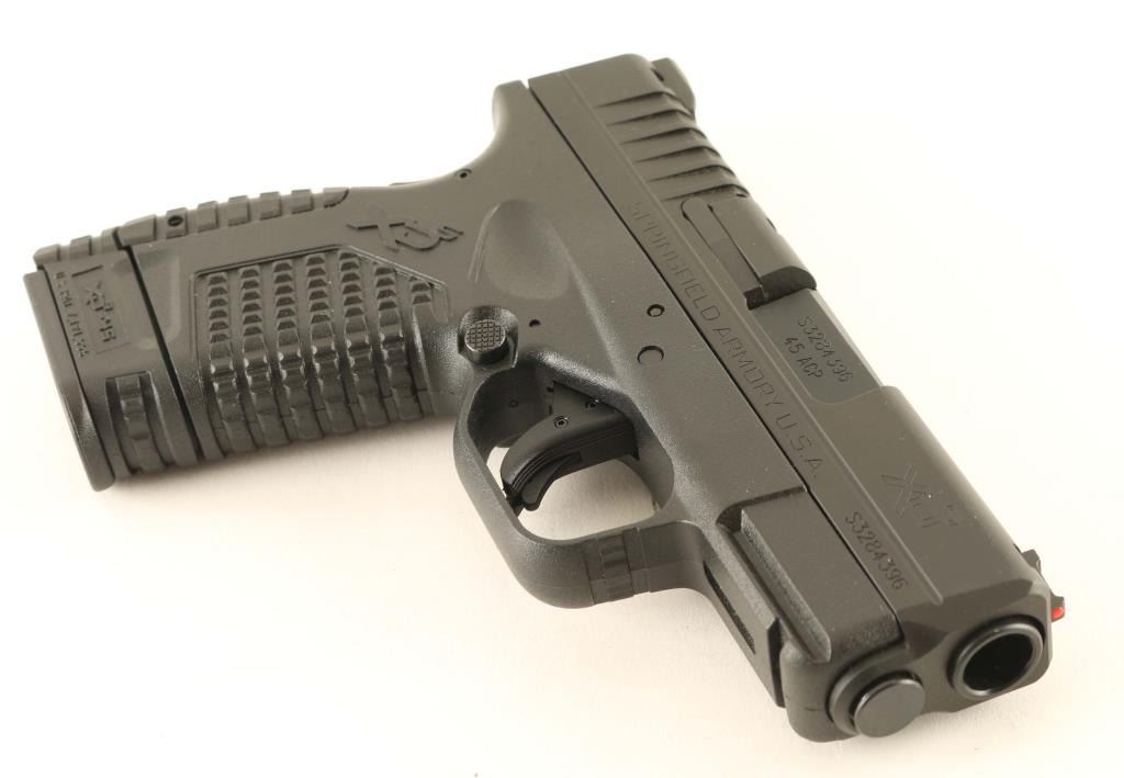 Croatian semiautomatic pistol imported by Springfield Armory, Geneseo IL. Features 3.3" barrel, fixed three dot sights in dovetails, fiber optic insert front sight, striker fired, manual safety in trigger, loaded chamber indicator, grip safety, changeable back strap, accessory rail on dust cover, slim grip fits single stack magazines. Finish is black; polymer frame. Bore is excellent condition. Overall external condition is like new, with little evidence of handling. Includes factory plastic carry case, manual, cable lock, additional fiber optic replacement material, cleaning brush, different backstrap insert, one flush fit magazine, one extended magazine. Condition is NRA excellent - Like New *** Modern Firearm ***