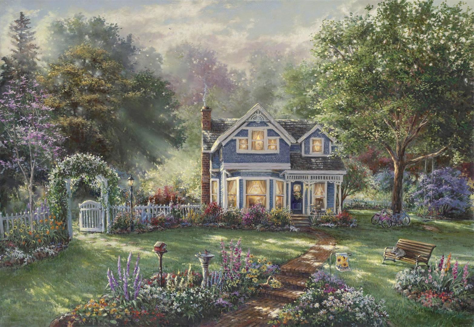 A hand-highlighted giclee image licensed by Kinkade studios and the Disney Company , and printed on 18x27" stretched canvas. COA by Publisher .