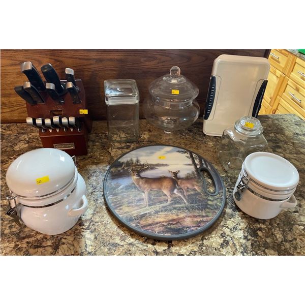 Assorted Collection Of Kitchen - Cuisinart Knife Set With Block, Cannisters, & More