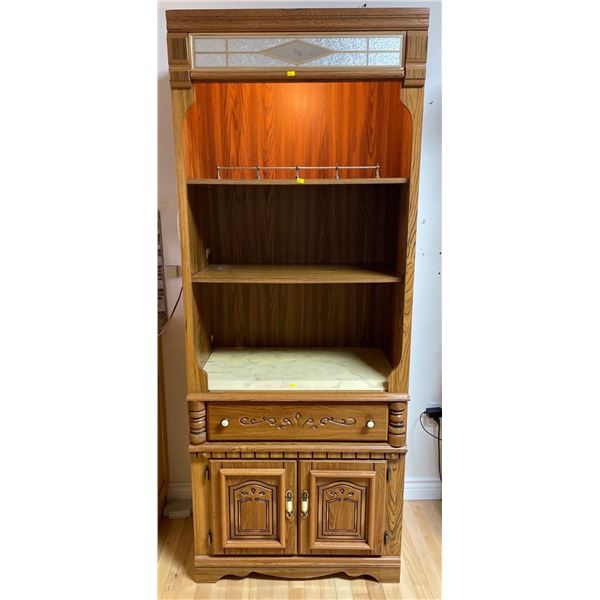 Vintage Wooden Bookshelf - 1 Drawer, 2 Cabinets 30Lx18Dx76H
