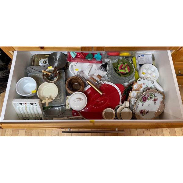 Entire Contents Of Drawer - Serving Dishes, Wooden Bowls, Stoneware, & More