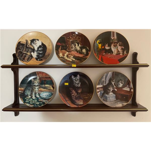 6 Plate Set Of Victorian Cat Kapers With Vintage Shelf 31Lx4Dx15H