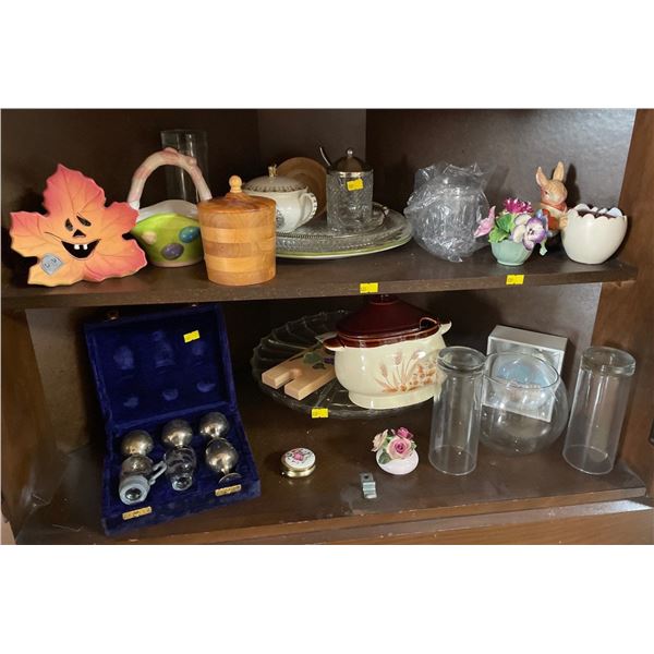 Assorted Collection Of Home Decor - Silver Plated Shot Glass Set, Serving Trays, Figurines & More