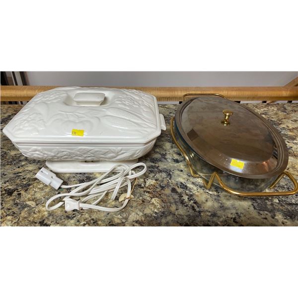Electric Ceramic Soup Tureen & Glass Serving Dish With Lid