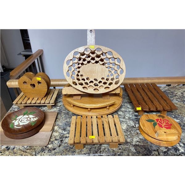 Assorted Collection Of Handmade Wood Crafted House Decor