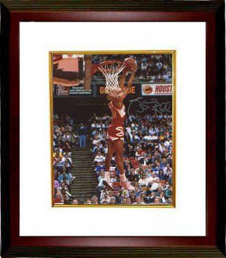 Spud Webb was the shortest person to compete in the NBA Slam Dunk Contest. He won the event in 1986. His participation surprised the media; including his teammate and defending dunk champion Dominique Wilkins, who had "never seen me dunk before," Webb said. His dunks included the elevator two-handed double pump dunk, the one-handed off the backboard one-handed jam, a 360-degree helicopter one-handed dunk, a 180-degree reverse double-pump slam, and finally, the 180-degree reverse two-handed strawberry jam from a lob bounce off the floor. He defeated Wilkins with two perfect 150-point scores in the final round. Spud Webb has hand autographed this Atlanta Hawks 16x20 Photo. MAB Hologram and Certificate of Authenticity from Athlon Sports. Custom White Mat and Premium Mahogany Framed as shown.