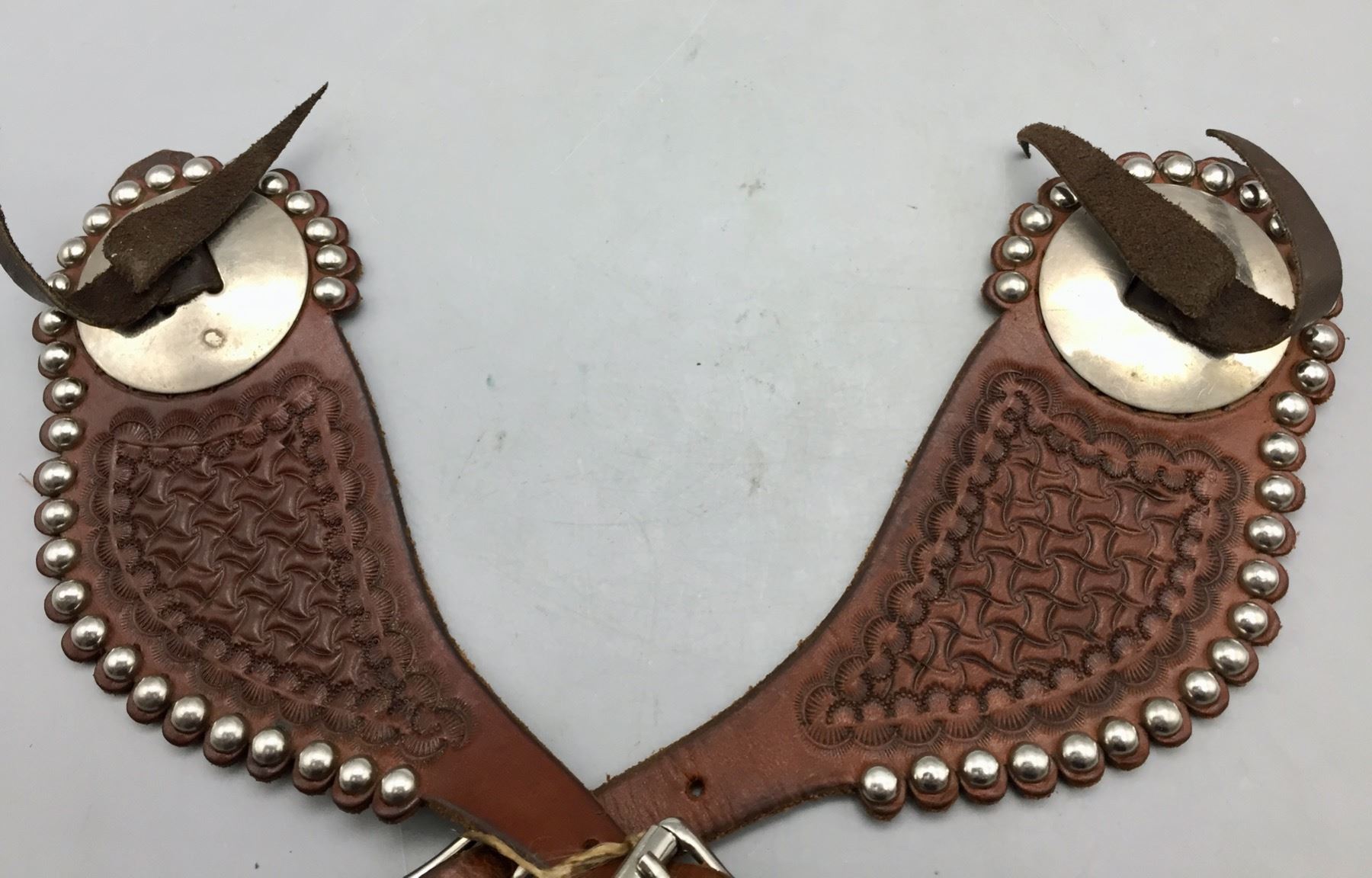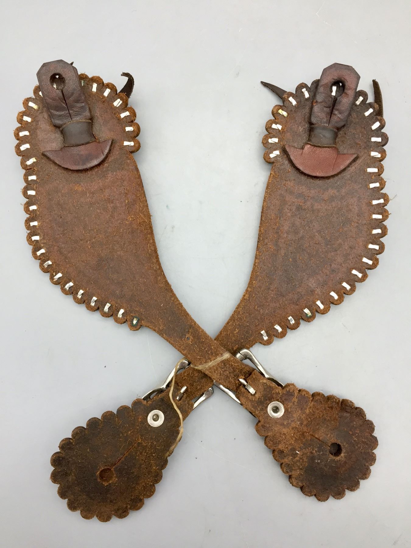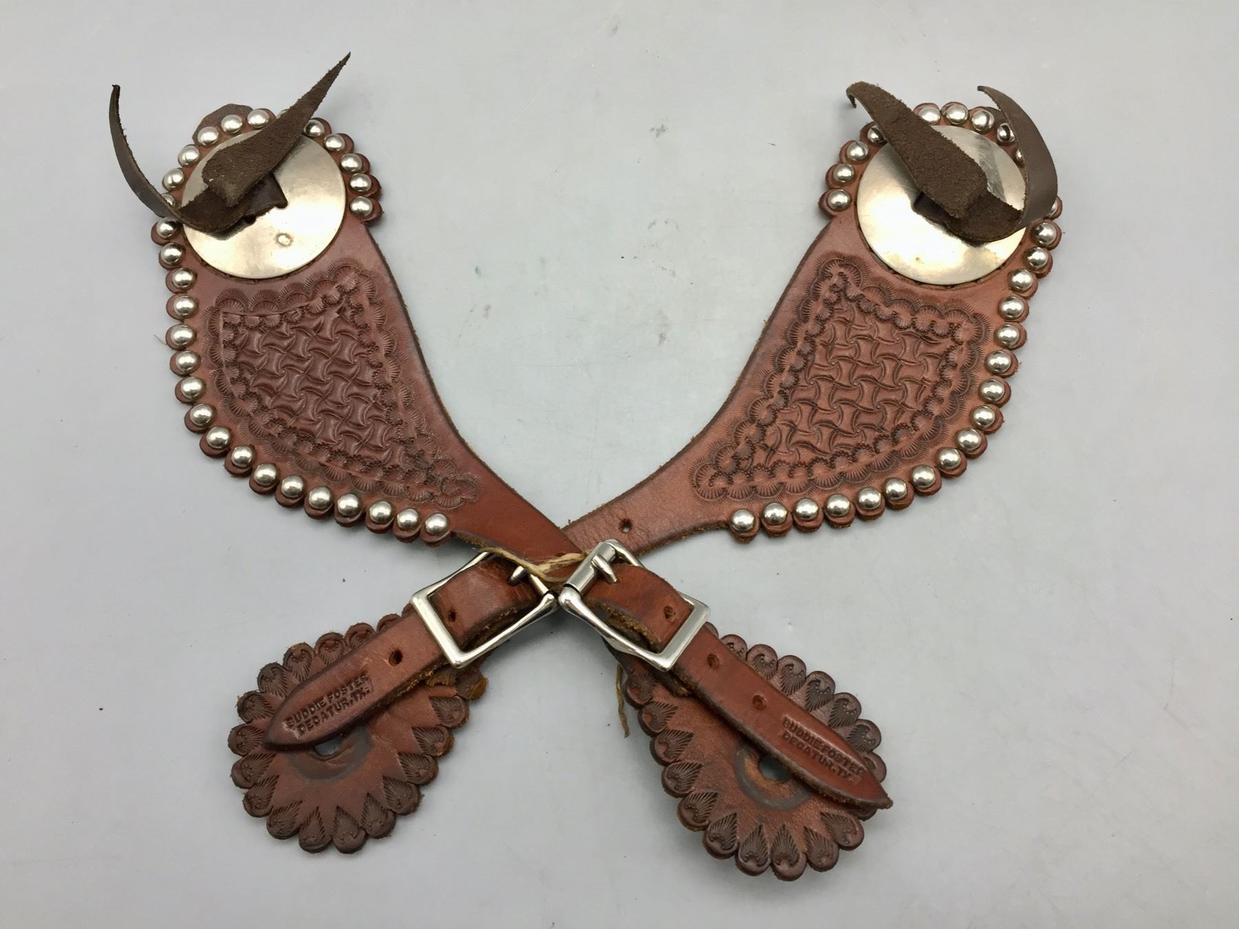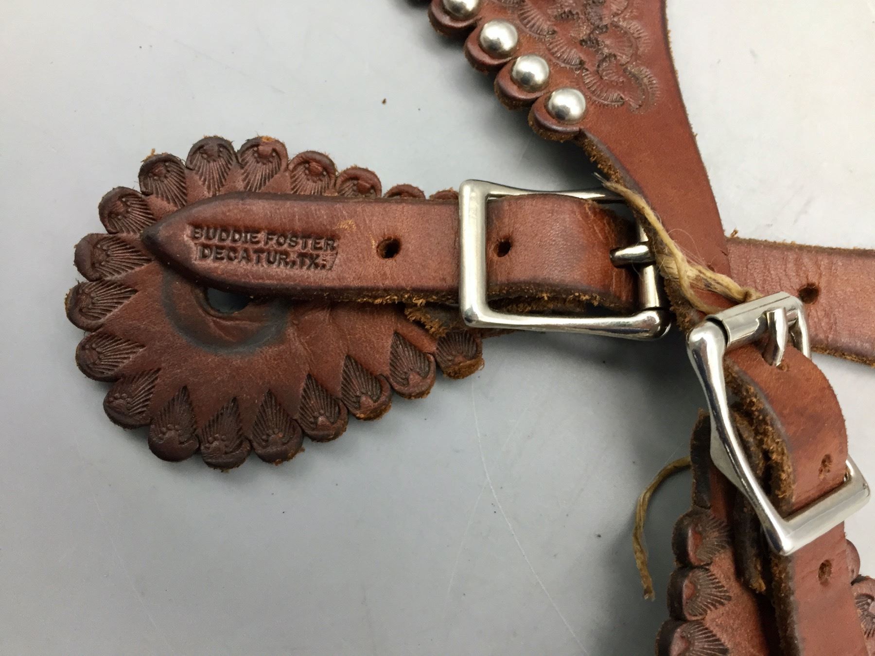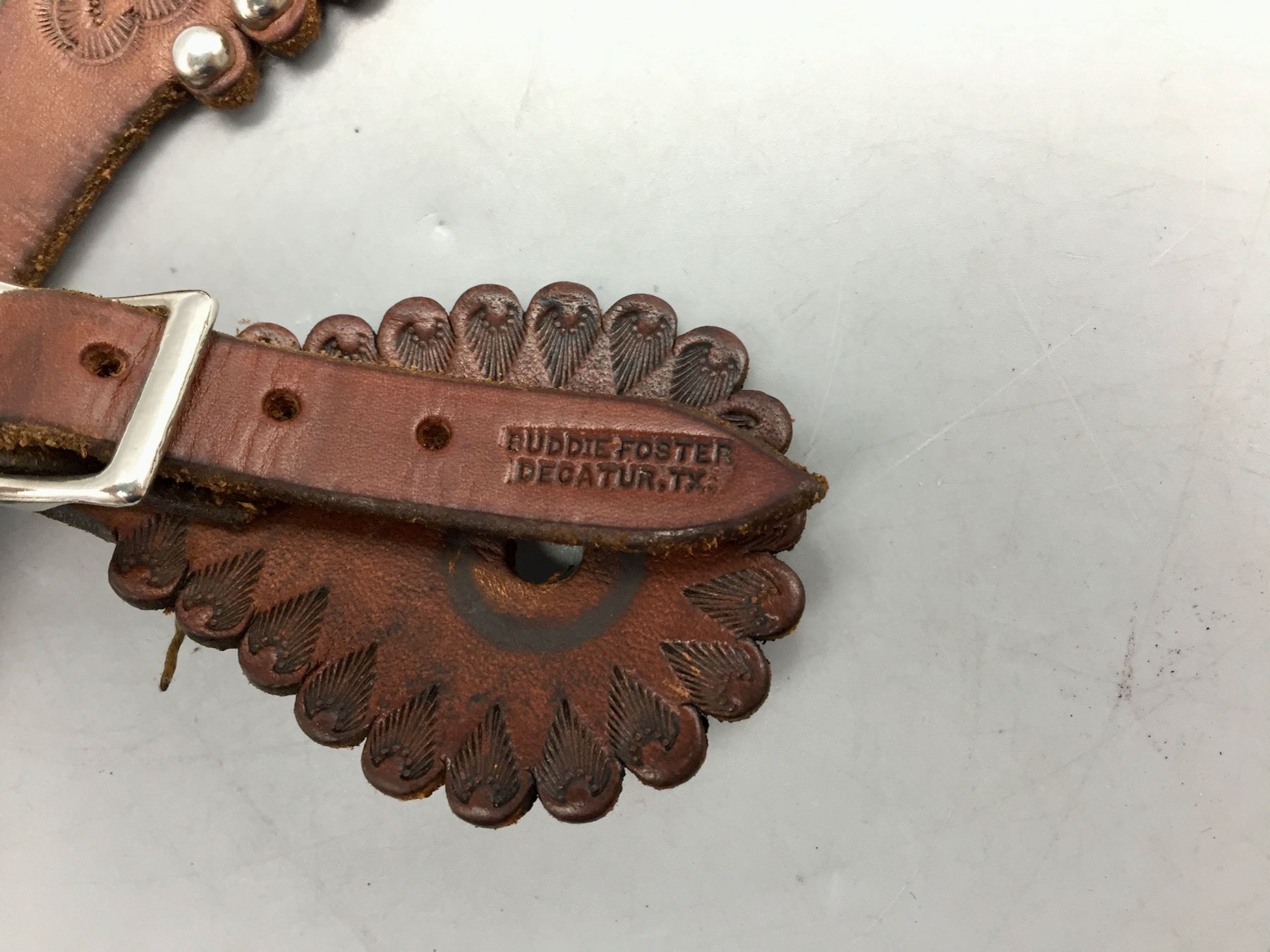 Description: For your enjoyment we offer for sale this gorgeous pair of hand tooled brown leather spur straps with sterling silver accents. Maker: Buddy Foster, Decatur, TX. Approx. Age: Vintage. Size: 10†long. Condition: Good for its age, normal wear expected. Please look closely at the pictures - they are an important part of our description. Shipping: There will be a $5 handling / packaging fee for shipping this lot. The actual cost of postage will be added on top of that.