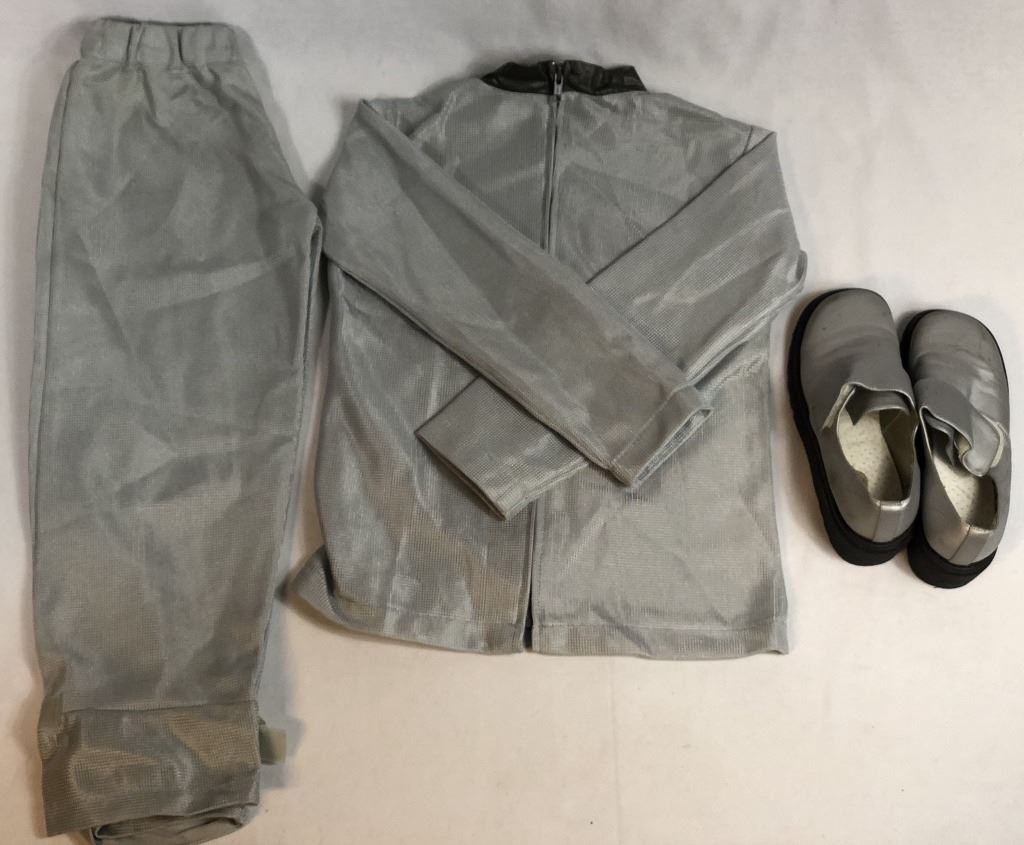 Screen worn costume used by the evil kid robot in the production of 'Spy Kids 3: Game Over' (2003), the spy adventure comedy movie where, Carmen's caught in a virtual reality game designed by the Kids' new nemesis, the Toymaker. It's up to Juni to save his sister, and ultimately the world.