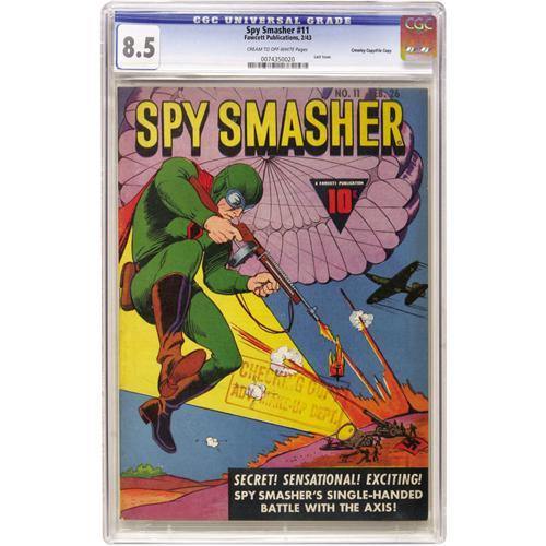 <B>Spy Smasher #11 Crowley Copy/File Copy pedigree (Fawcett, 1943) CGC VF+ 8.5 Cream to off-white pages.</B></I> Last issue of the title. Overstreet 2006 VF 8.0 value = $506; VF/NM 9.0 value = $803. CGC census 3/07: 2 in 8.5, 1 higher.<BR><BR><b>Shipping:</b> Slabbed Comic (<a target=""_blank"" href=""http://www.heritageauctions.com/common/shipping.php"">view shipping information</a>)