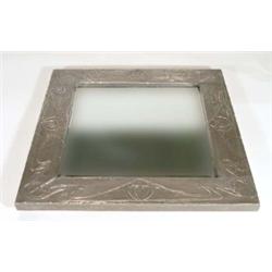 Square Art Nouveau style pewter framed mirror with stylised motifs, 46cm long