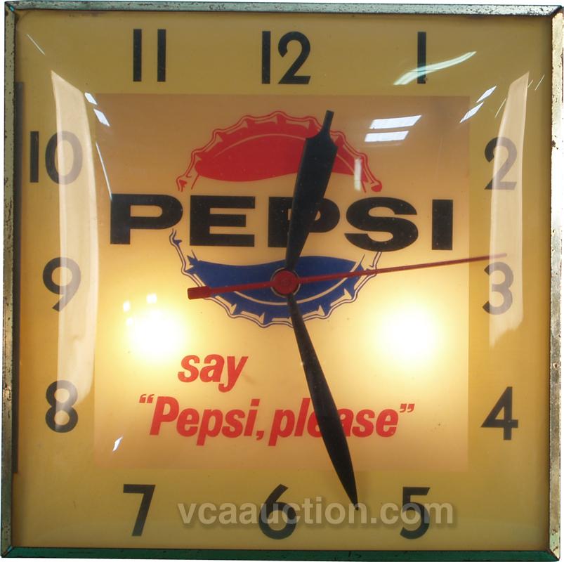 Square Lighted Pepsi-Cola Pam Clock "Say Pepsi Please" Works - 13" x 13"