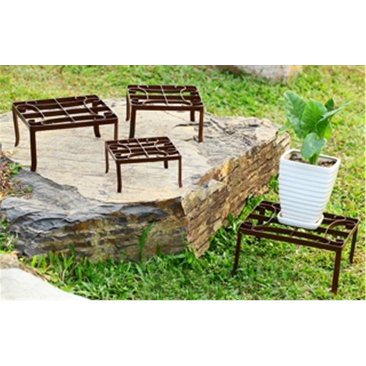 Square Nested Plant Stands - Set Of 4 - Largest 12.5" X 12.5" X 4 - Cast Iron