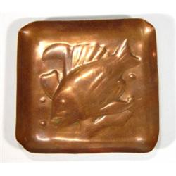 Square Newlyn copper dish embossed with a f…