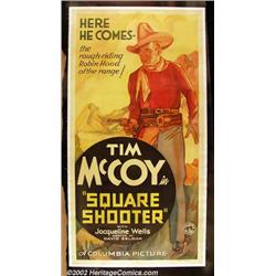 Square Shooter (Columbia 1935) Three Sheet (41" X 81") This is a fabulous full length image of the rough riding Robin Hood of the range; Tim McCoy starring in this Columbia B-Western oater. Fine on Linen. Important notice: We expect to be auctioning lots at the rate of 200-250 per hour. Sometimes eBay Premier live bid software cannot keep up with that pace, so we strongly recommend that you place a realistic proxy bid now as insurance to avoid disappointment. Also please note that all Heritage/CAA lots purchased through eBay Premier carry a 20% Buyer's Premium.
