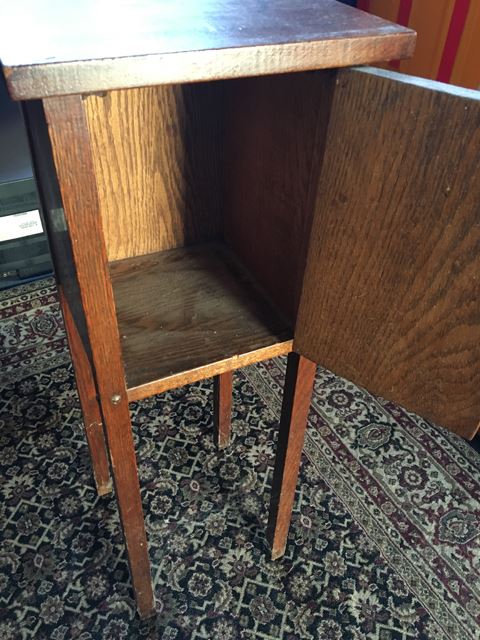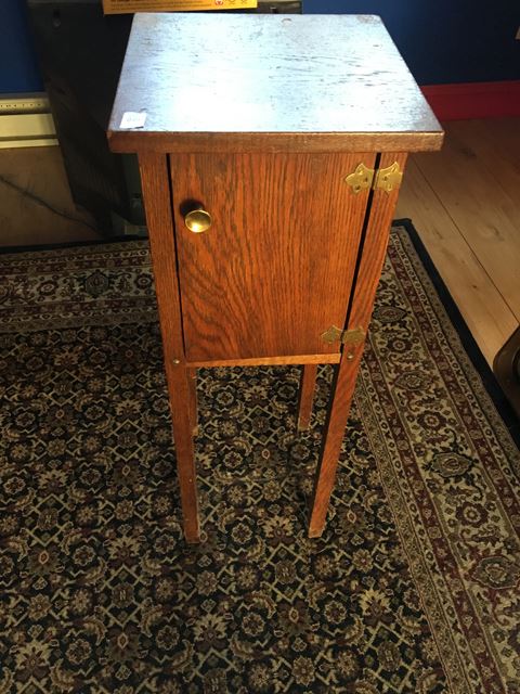 Arts & Crafts Smoking Table table measures approx. 11"x11"x31.5". This lot can be picked up in Woodbury CT for local buyers, or our shipper can pick up and ship to your location.