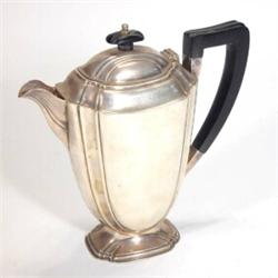Square based silver water jug with ebony knop and handle, Sheffield, 1943, 23cm high…