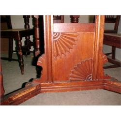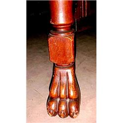Square oak dining table, paneled supports under top with fan design, paw feet and three leaves, C. 1900 Estimate 350/500